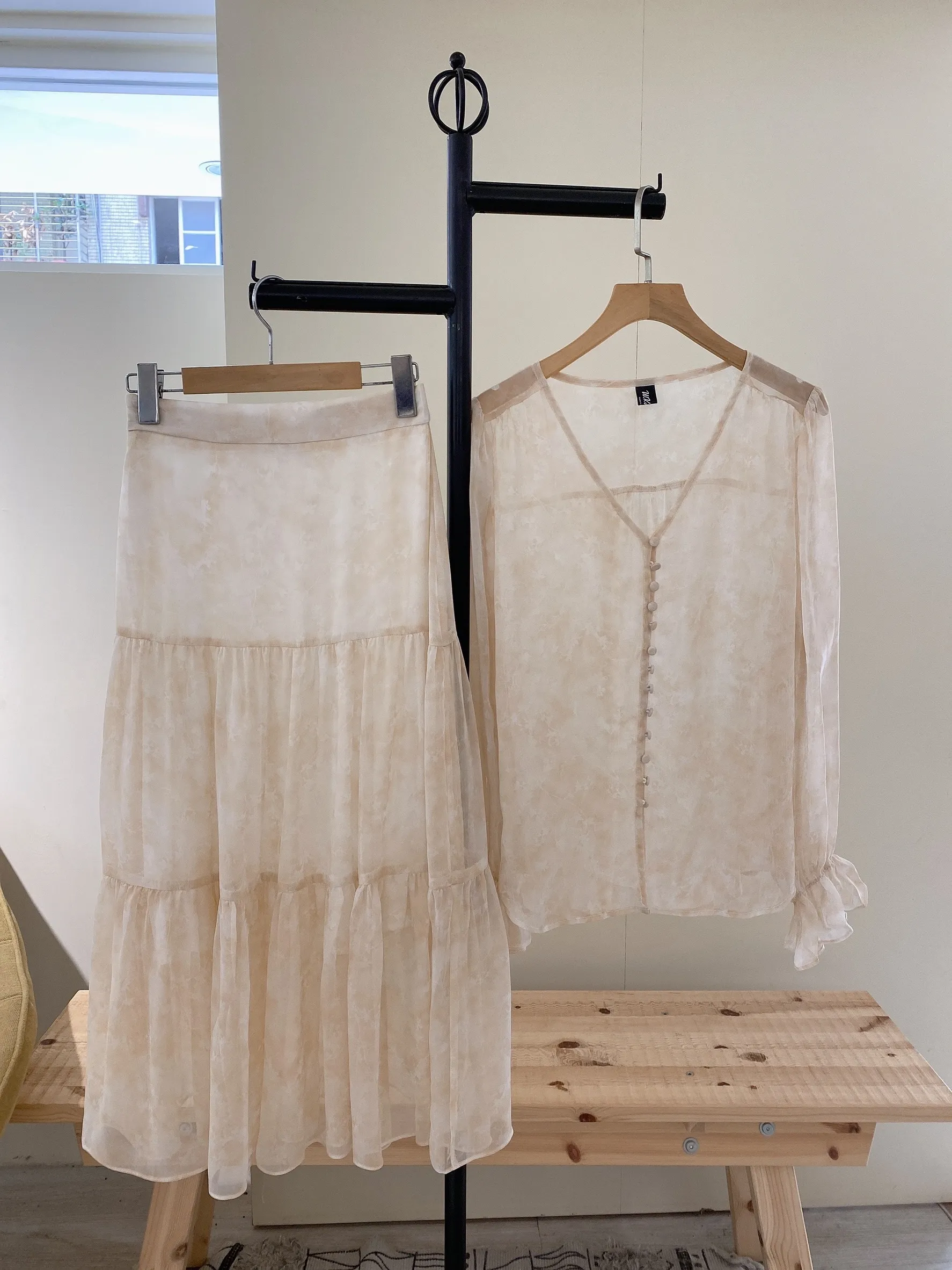 W.Korea x Seoul 暖陽擁抱品牌款潑墨套裝(上身+裙子)