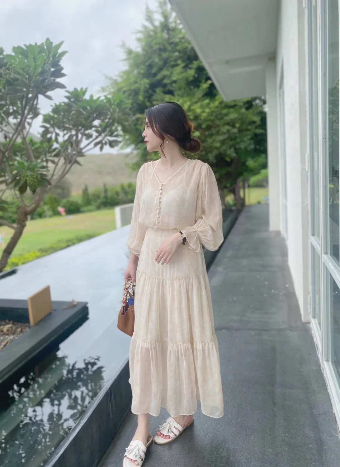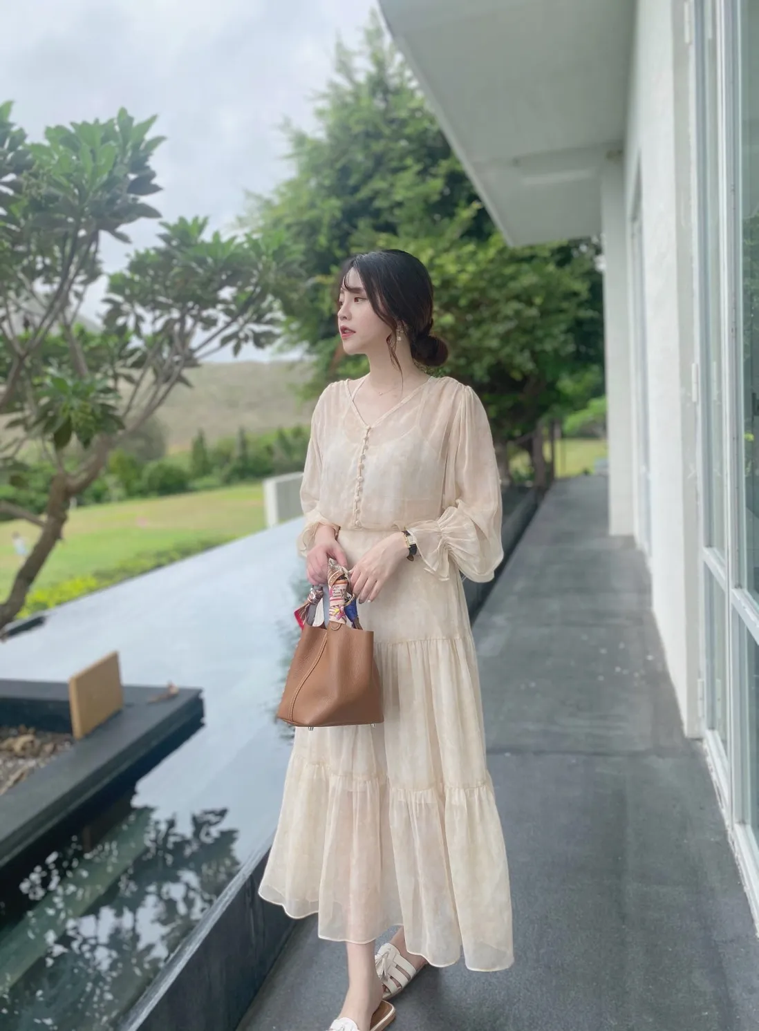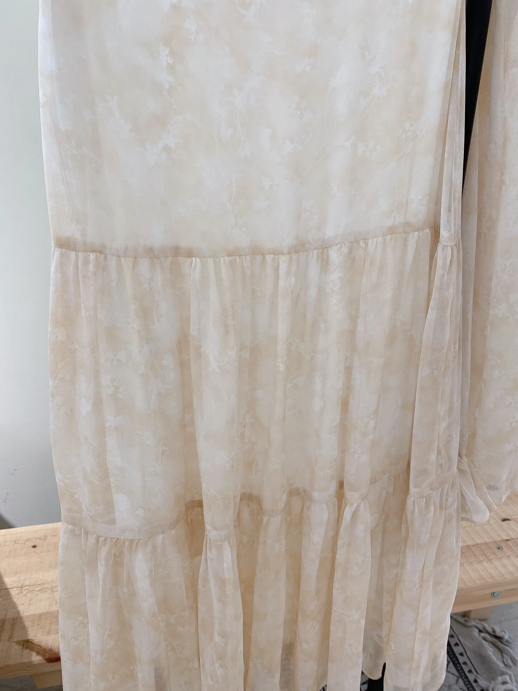 淺色潑墨的布讓整件洋裝看起來更有設計感,
