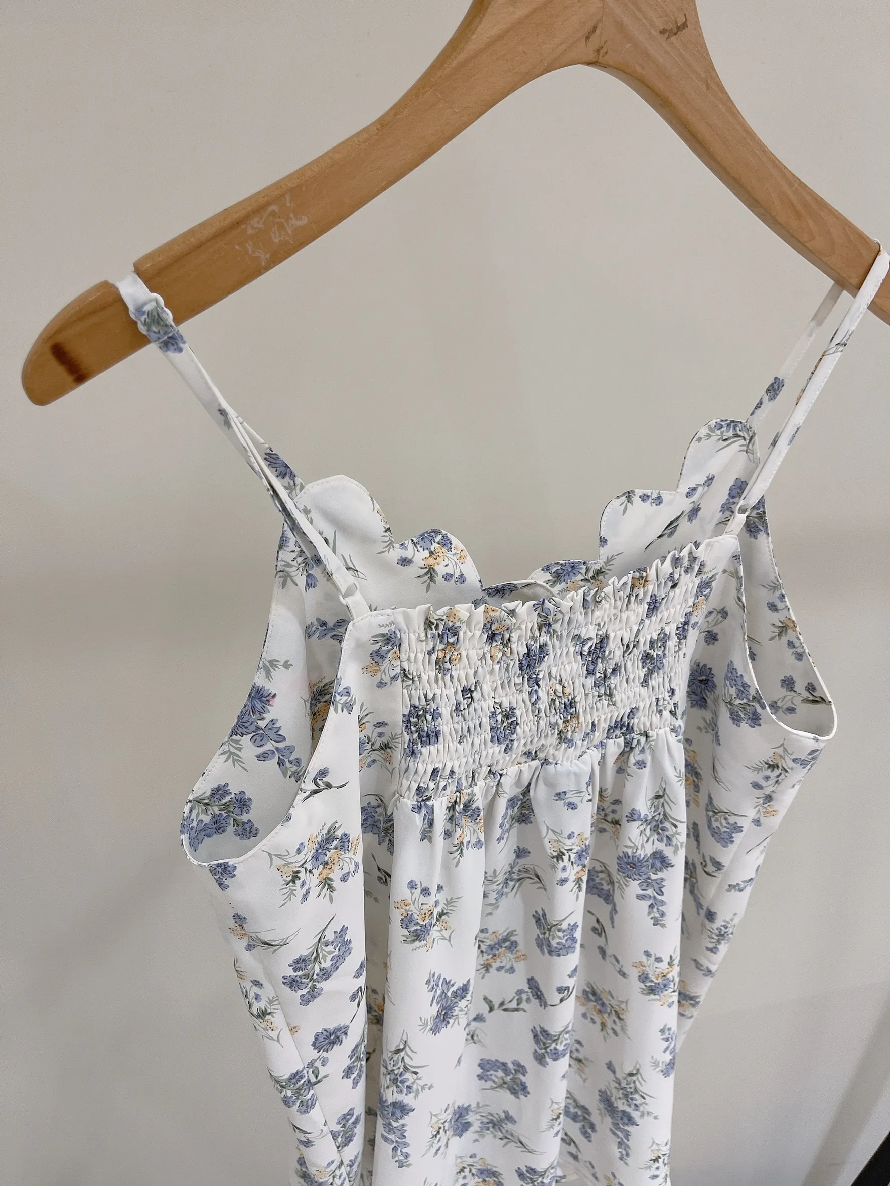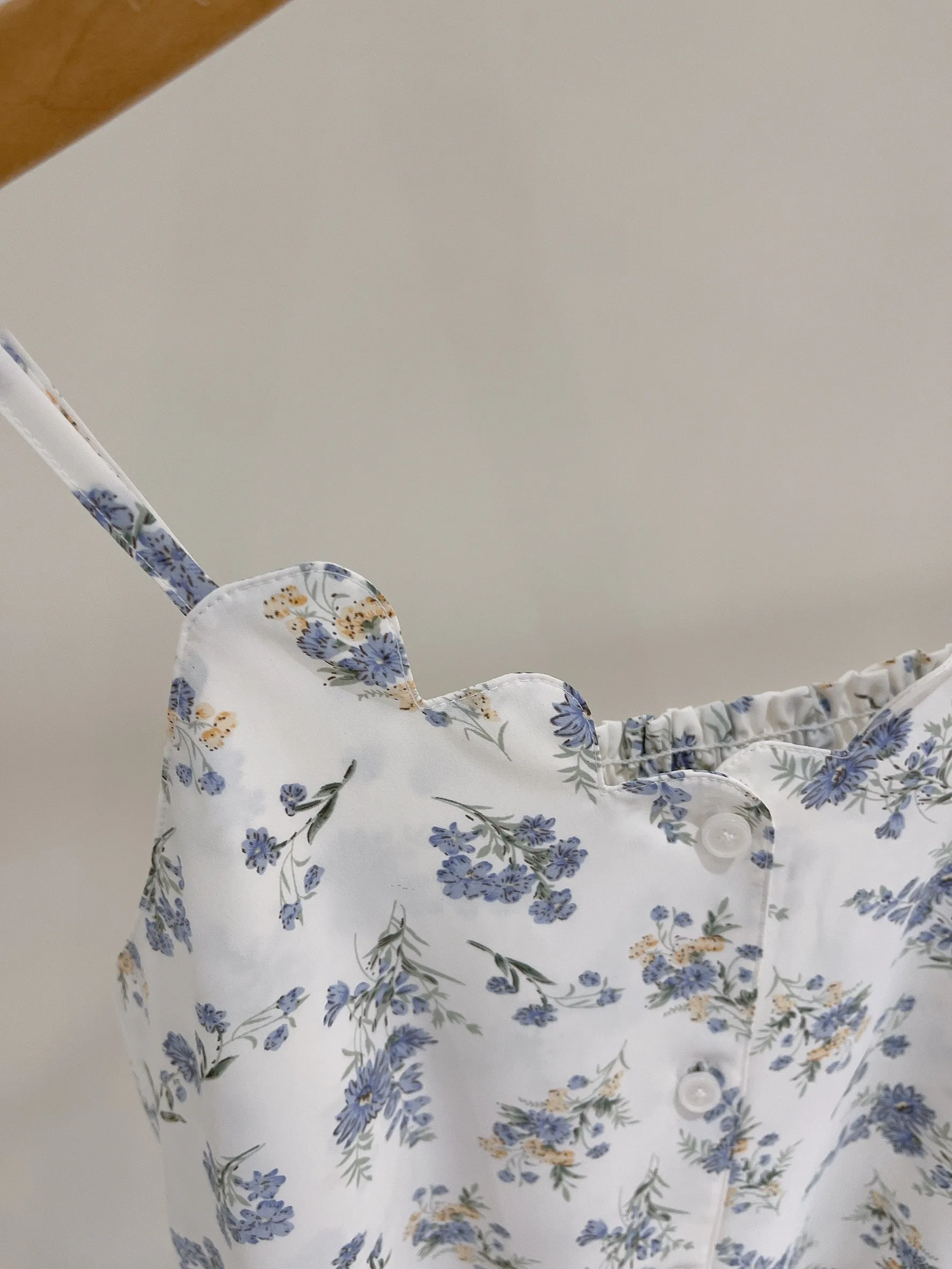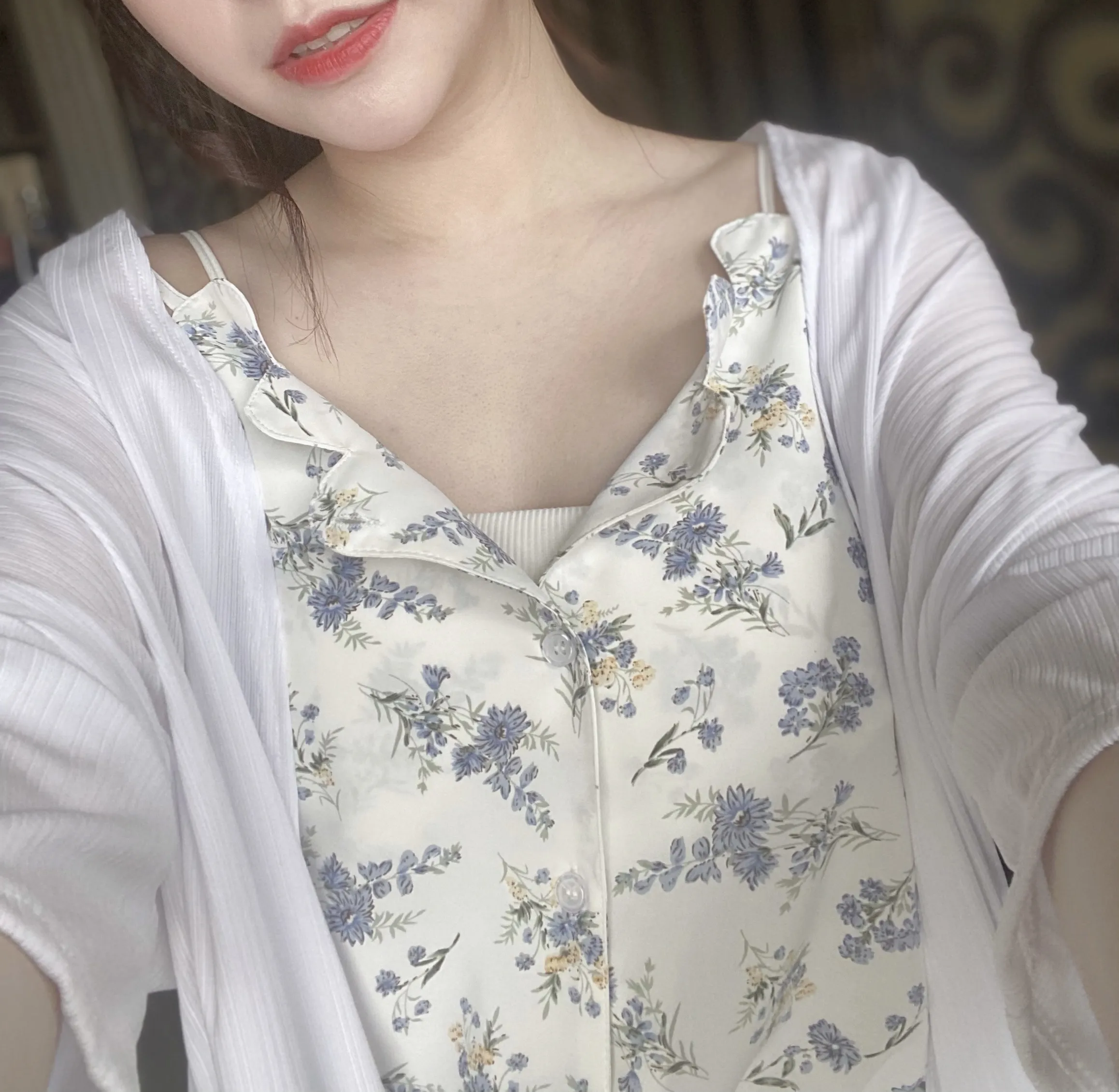 整套舒適雪紡料,底色純白色、搭上品牌嚴選碎花非常有浪漫夏天氣息