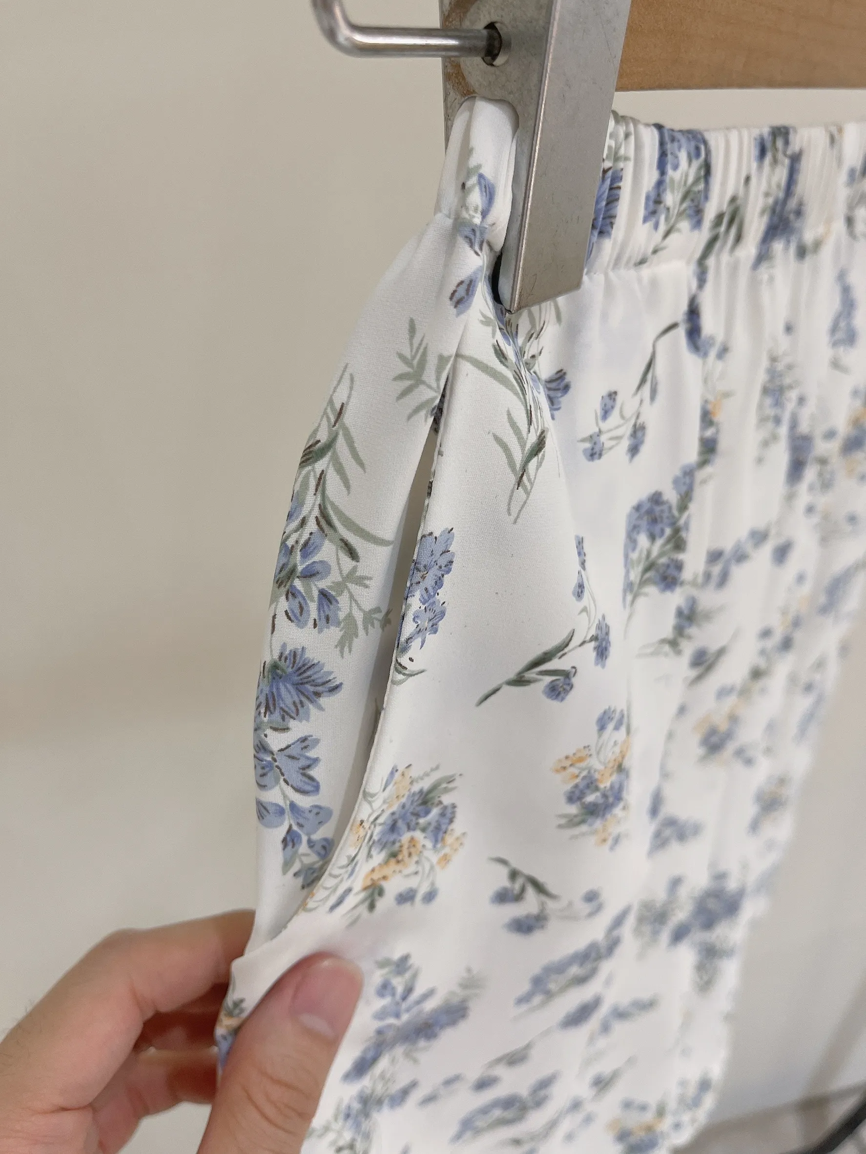 整件清新碎花,上衣及褲管部份都有做細緻波浪邊