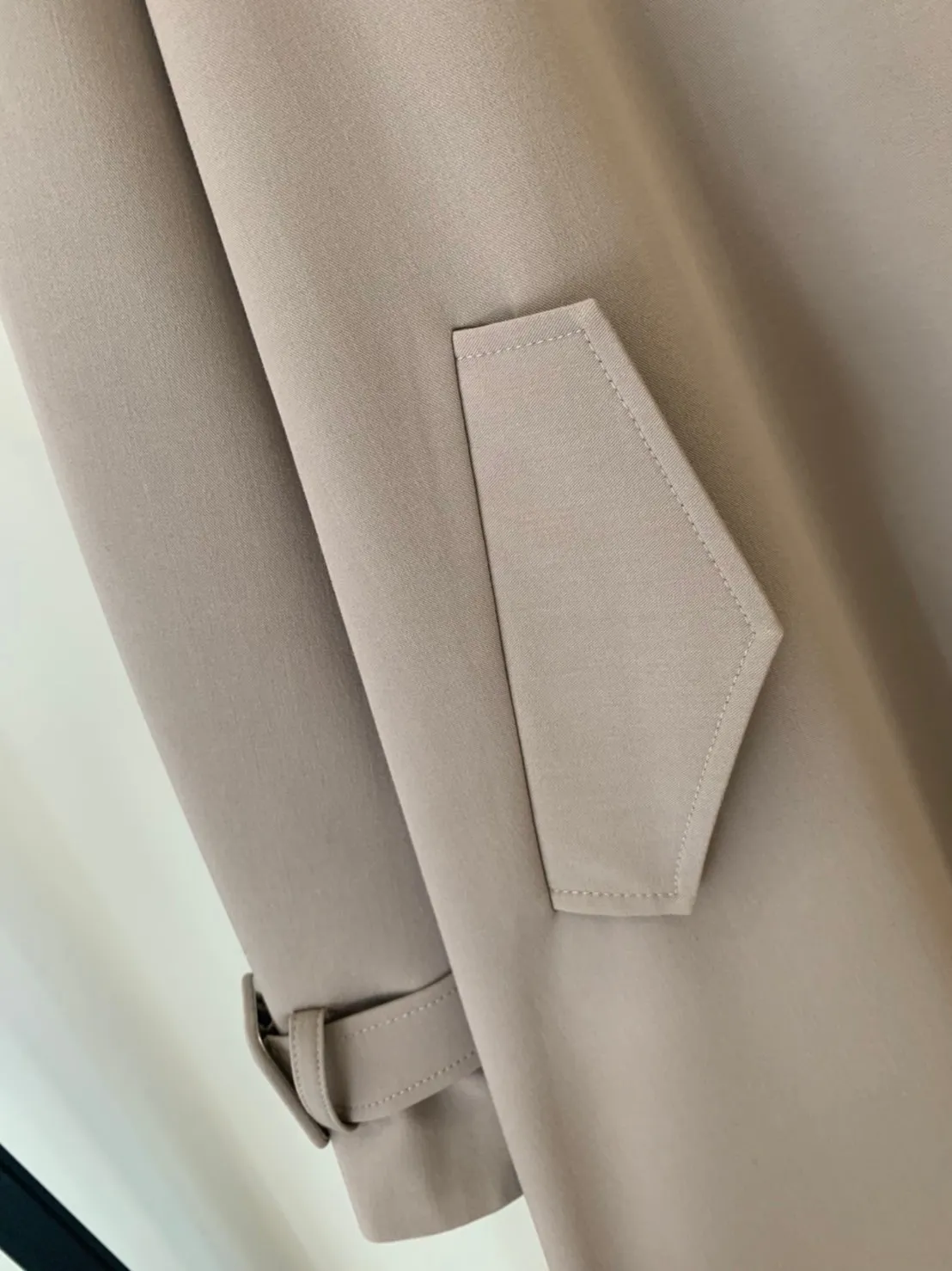 兩側有口袋設計/手袖釦環設計採用同色系高級包本布