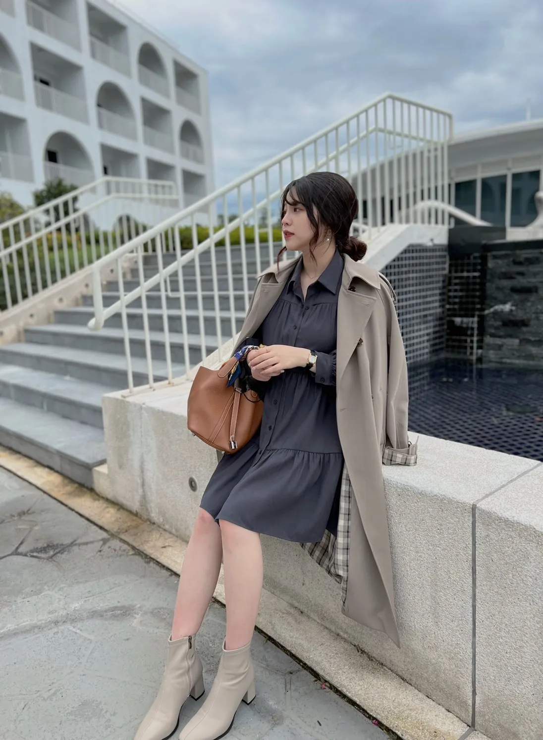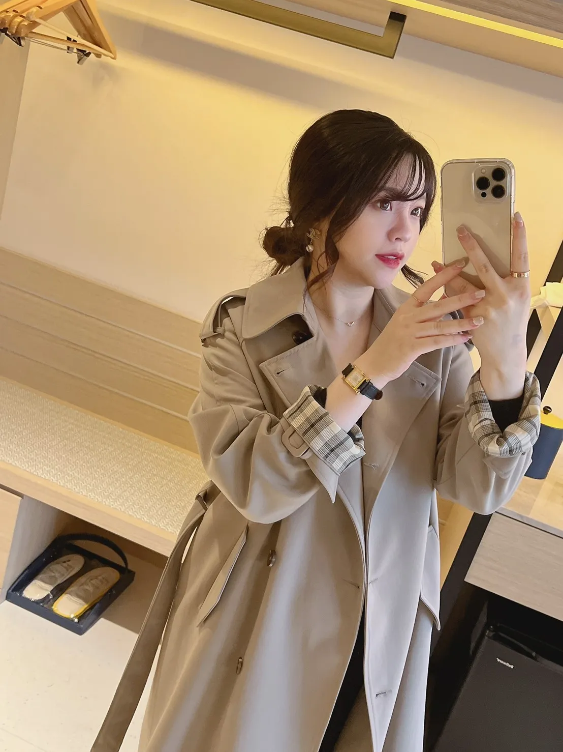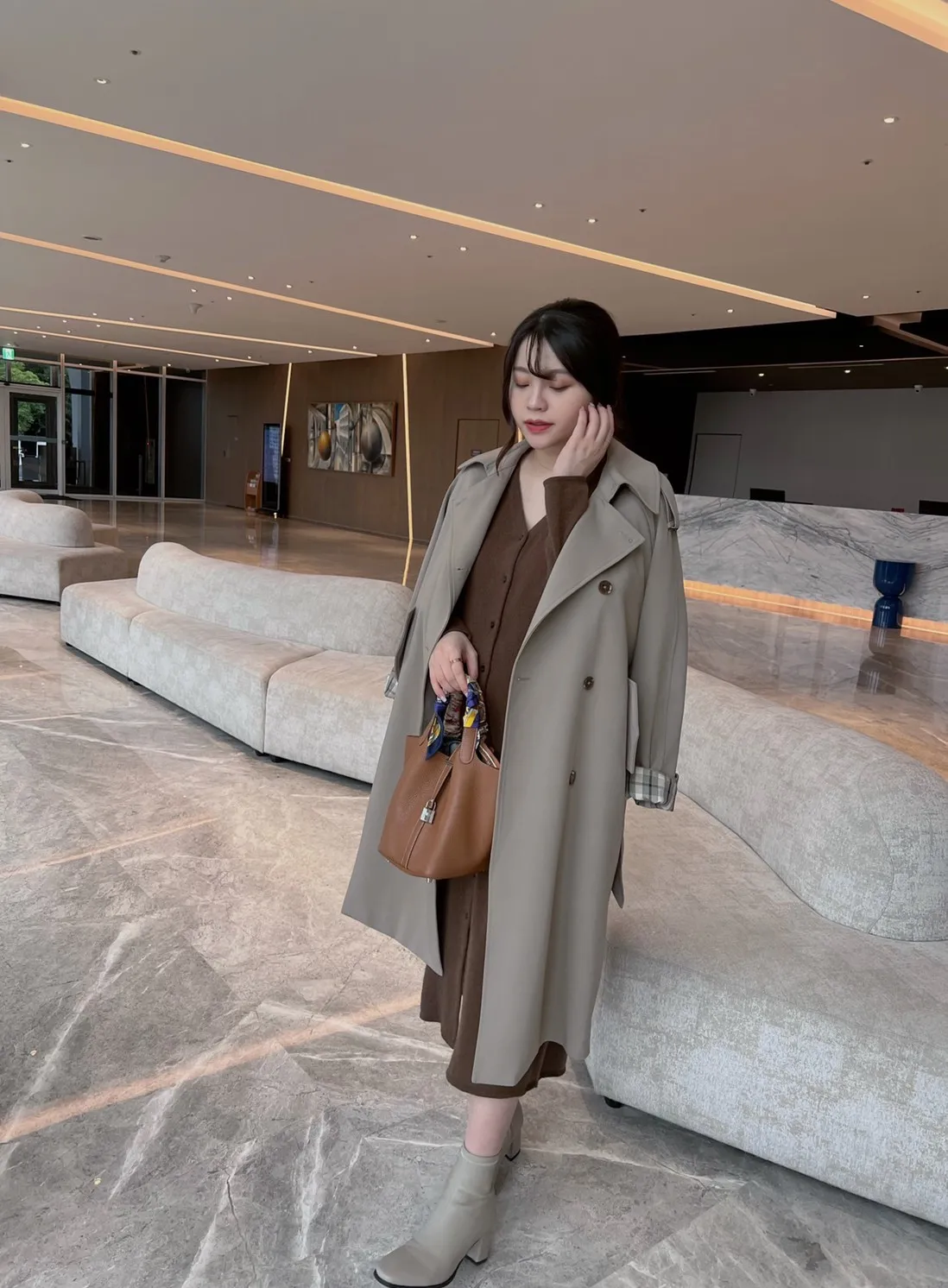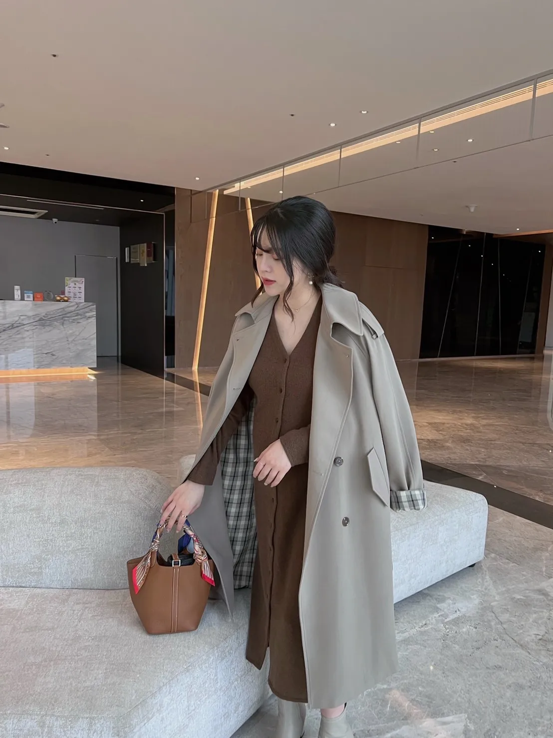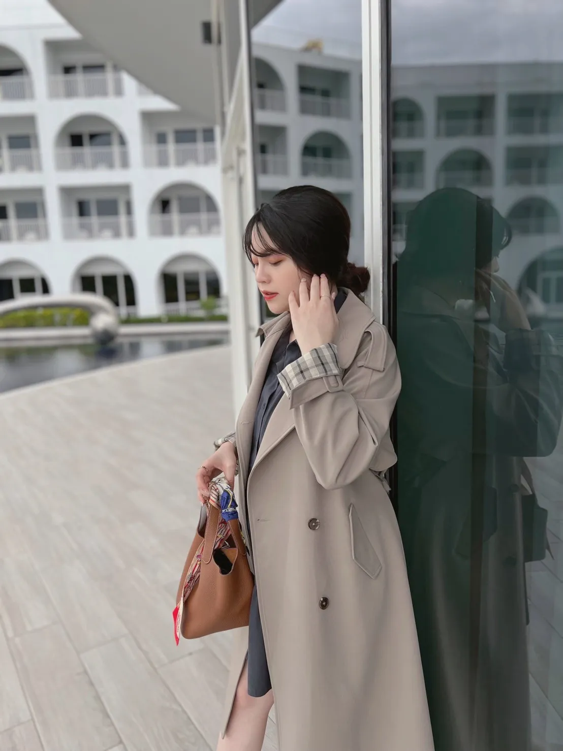 W.Korea x Seoul 微冷初冬內格紋排釦風衣