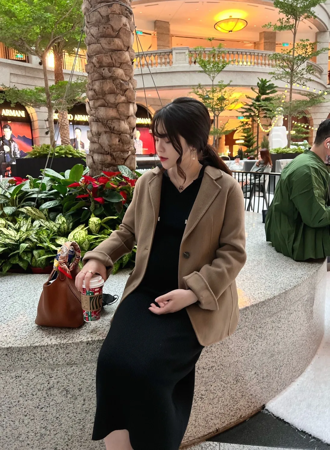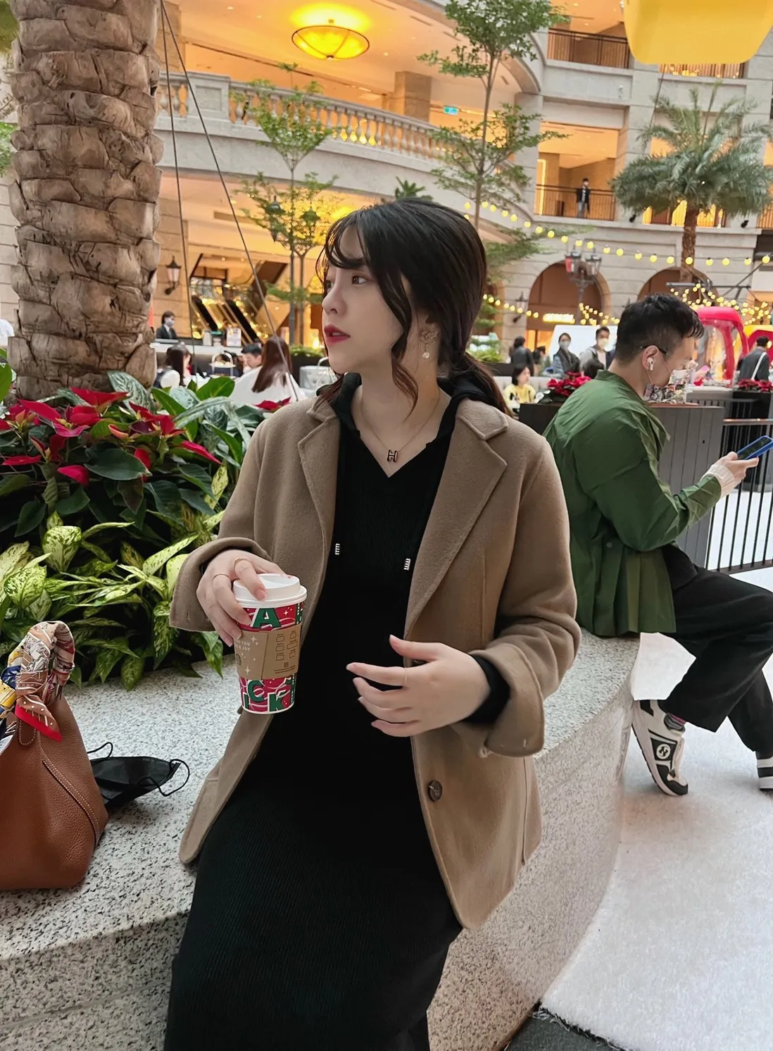 即使女生冬天穿美美大衣一樣有口袋可以溫暖雙手