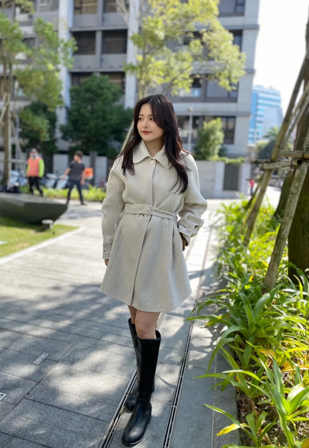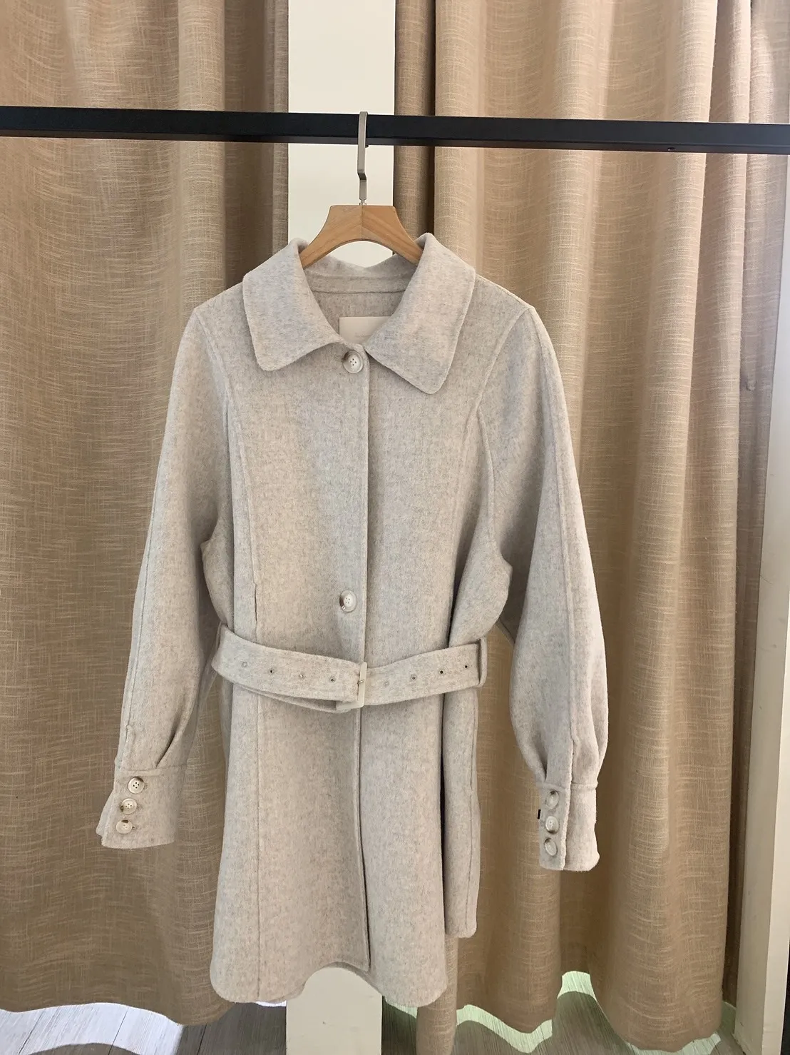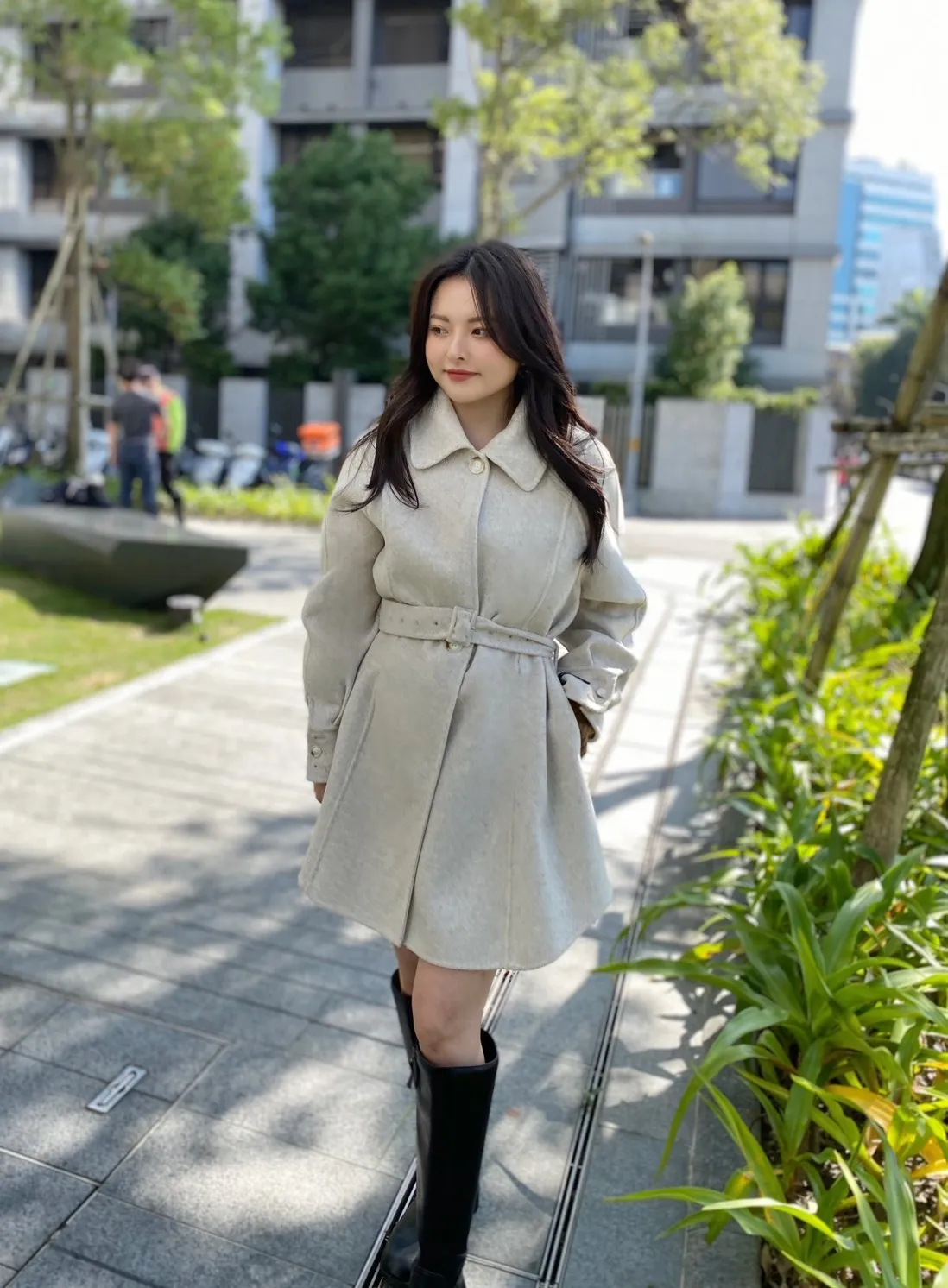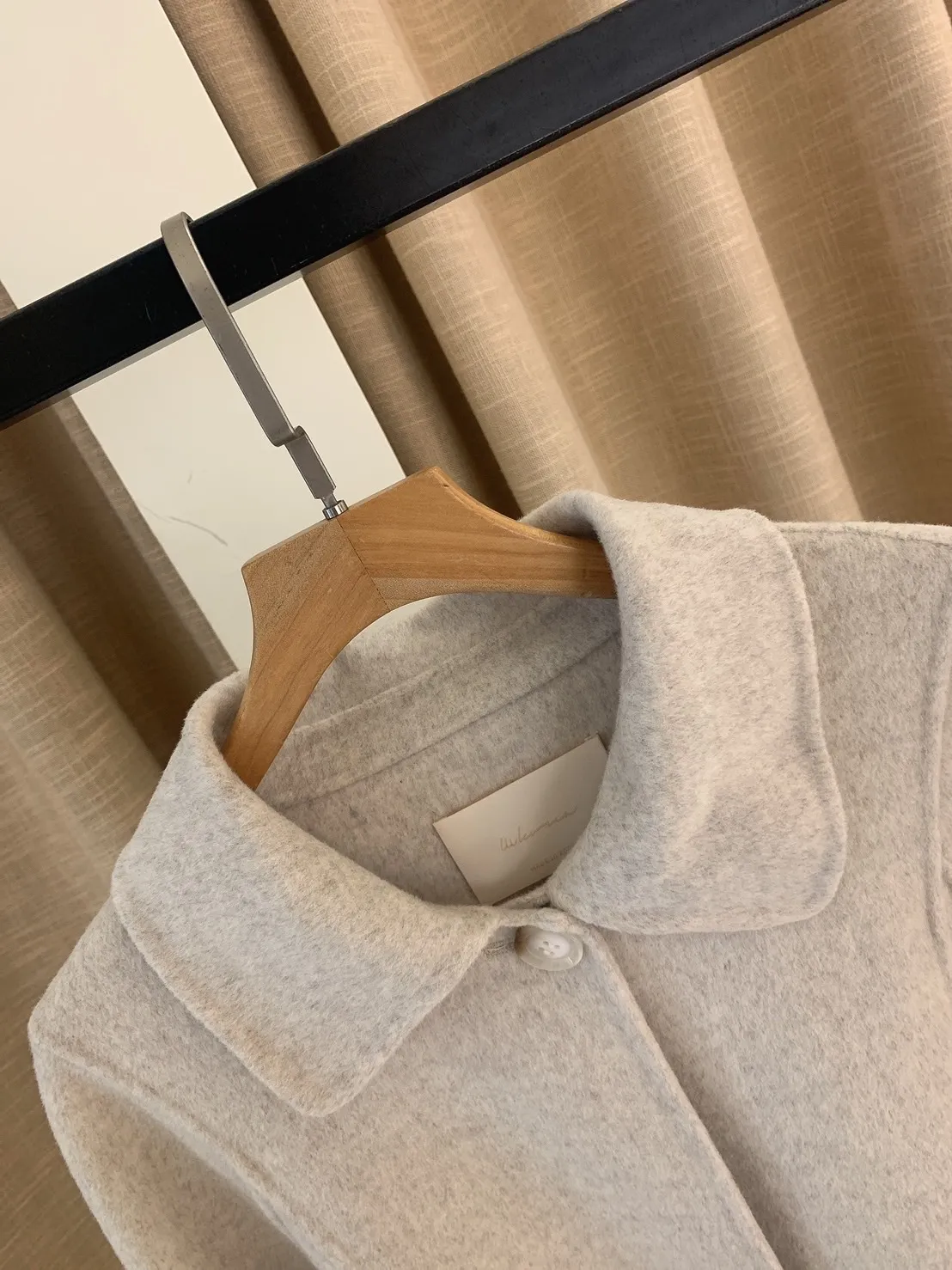 W.Korea 典雅千金100%手工羊毛斗篷感中長度大衣