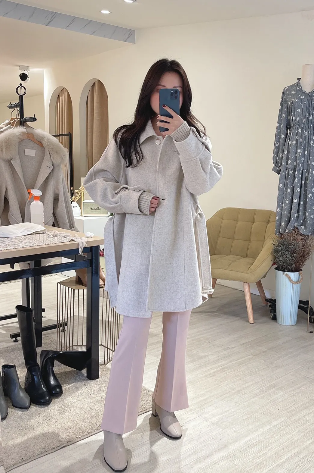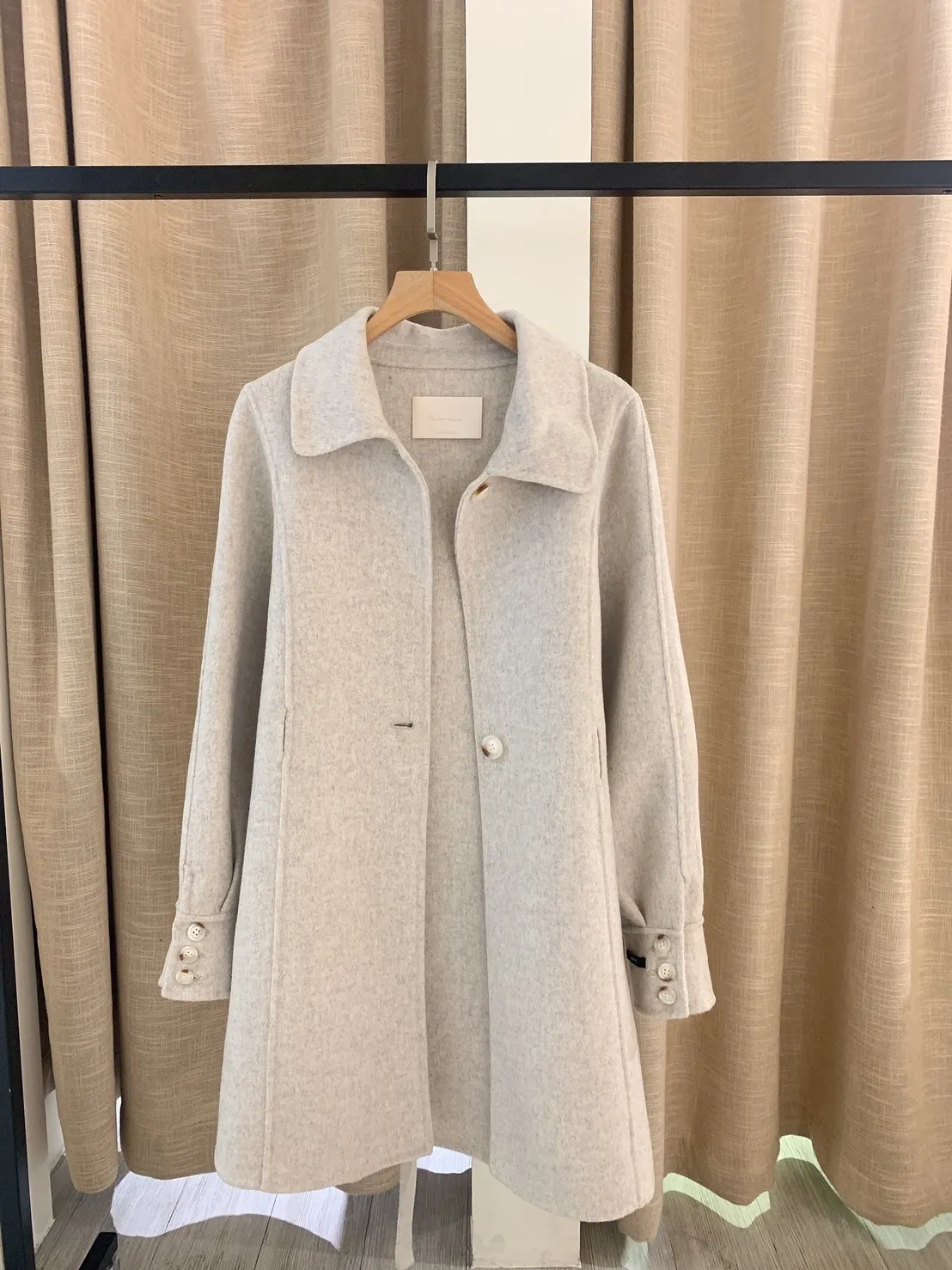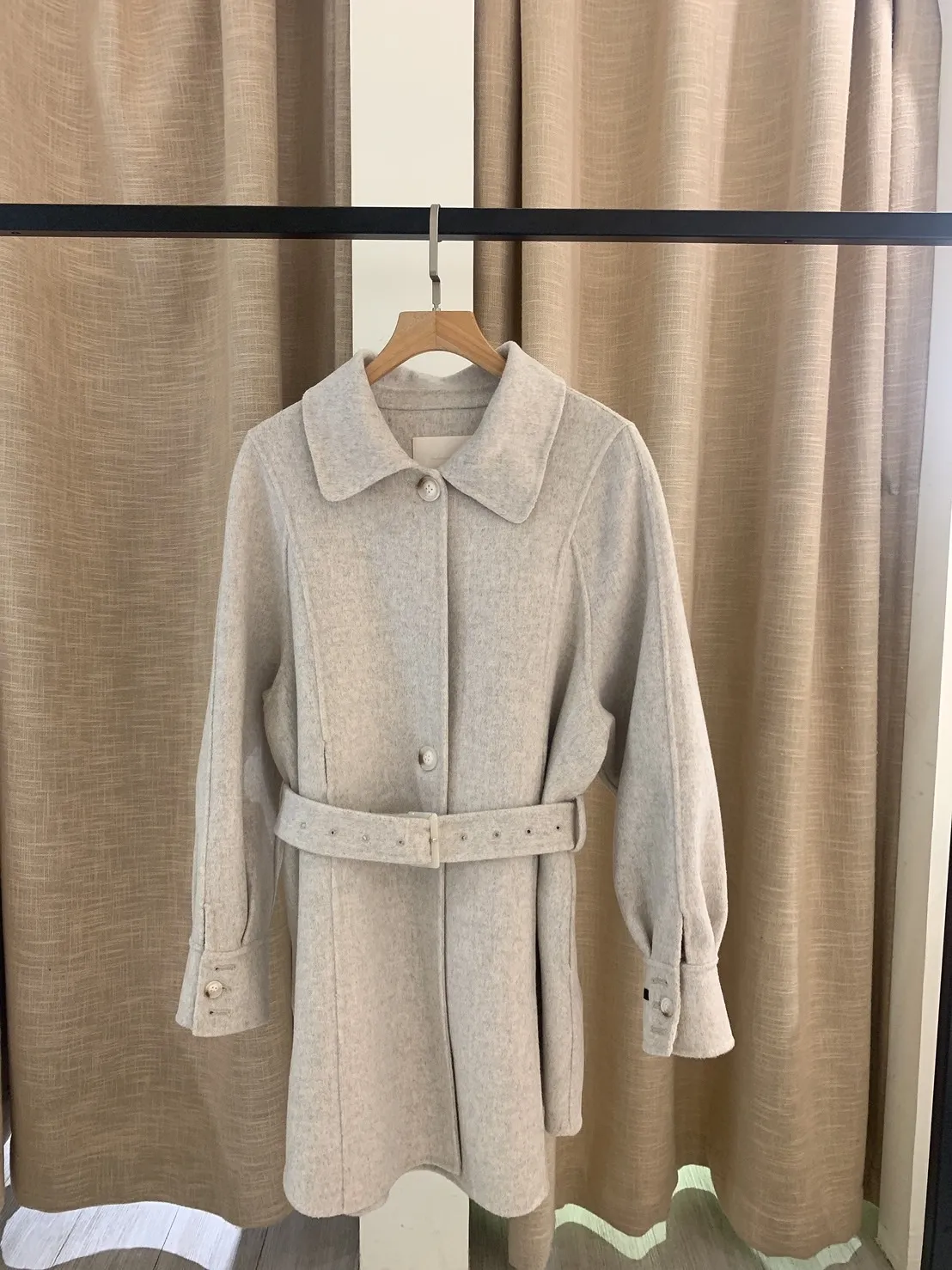 W.Korea 典雅千金100%手工羊毛斗篷感中長度大衣