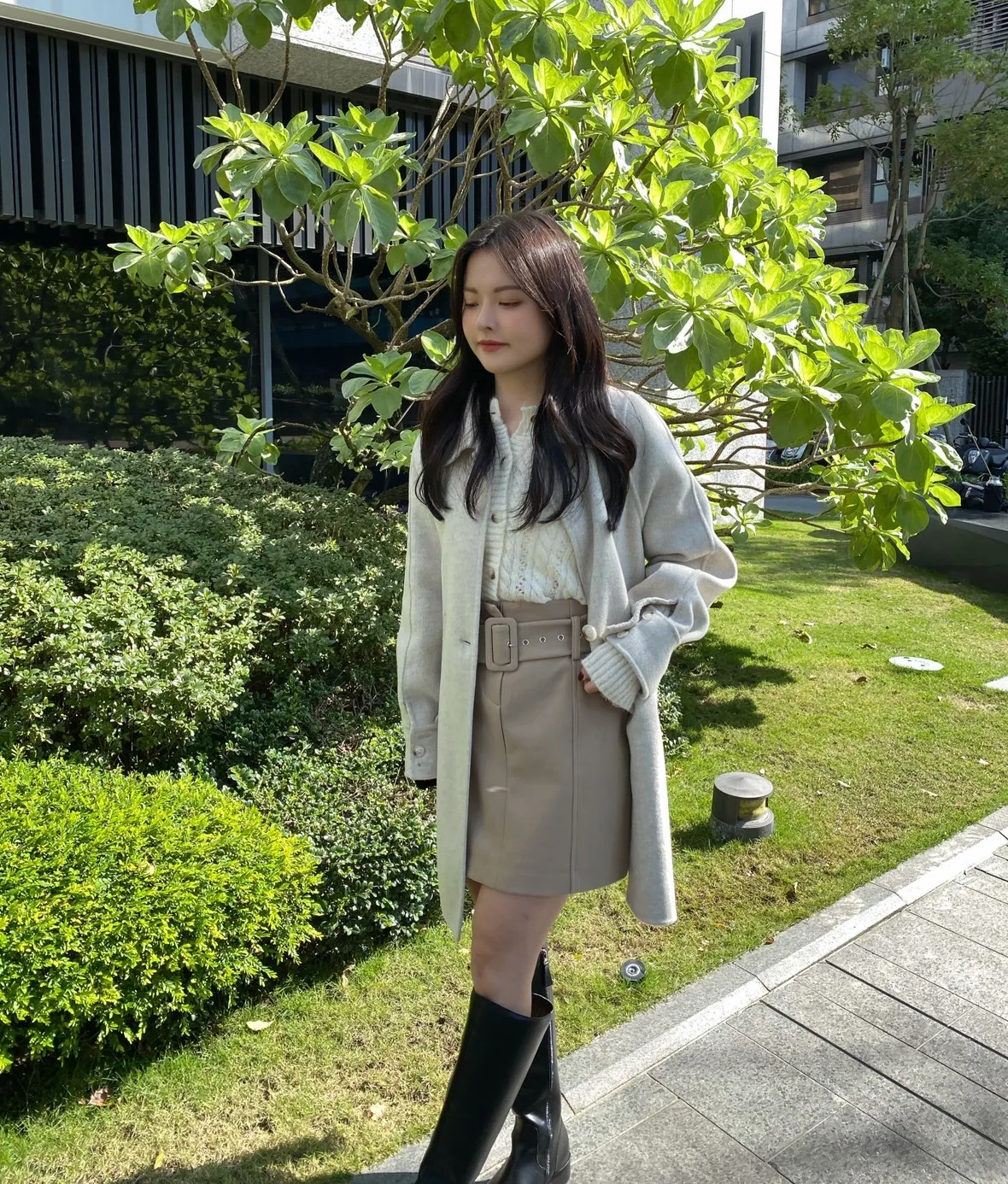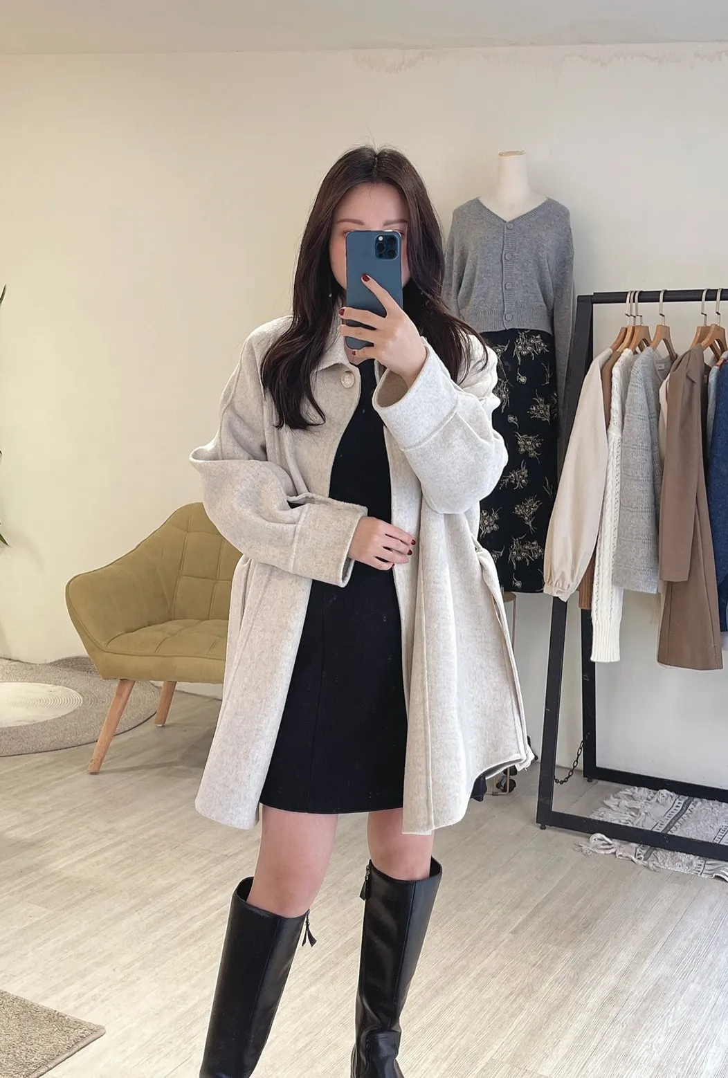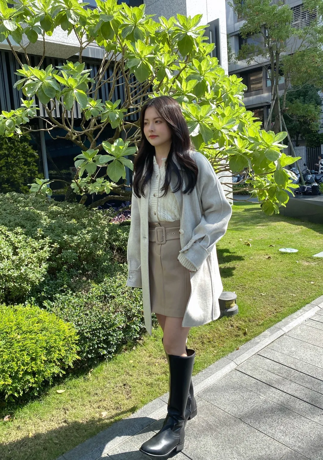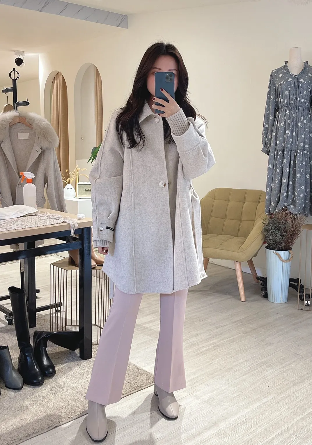 W.Korea 典雅千金100%手工羊毛斗篷感中長度大衣