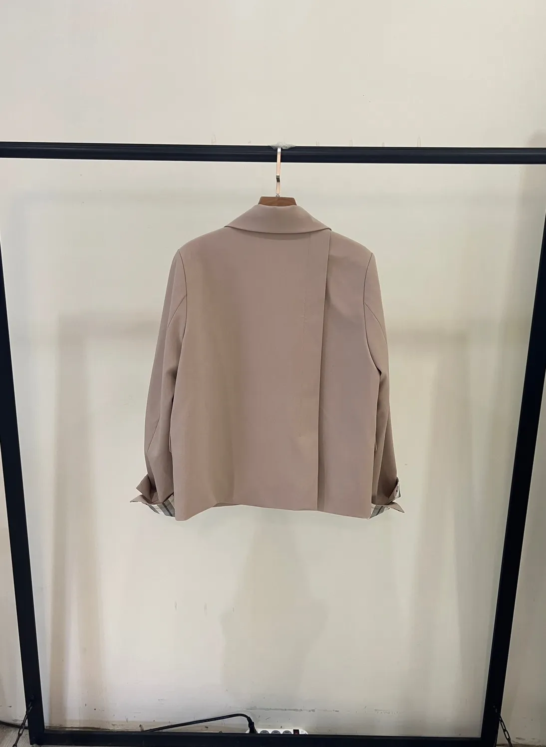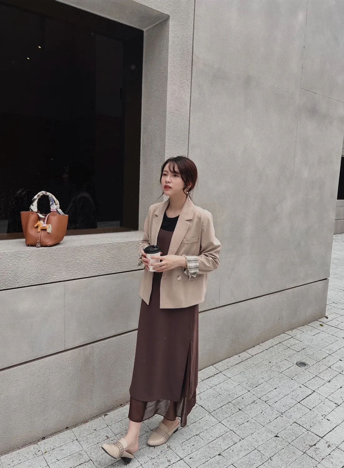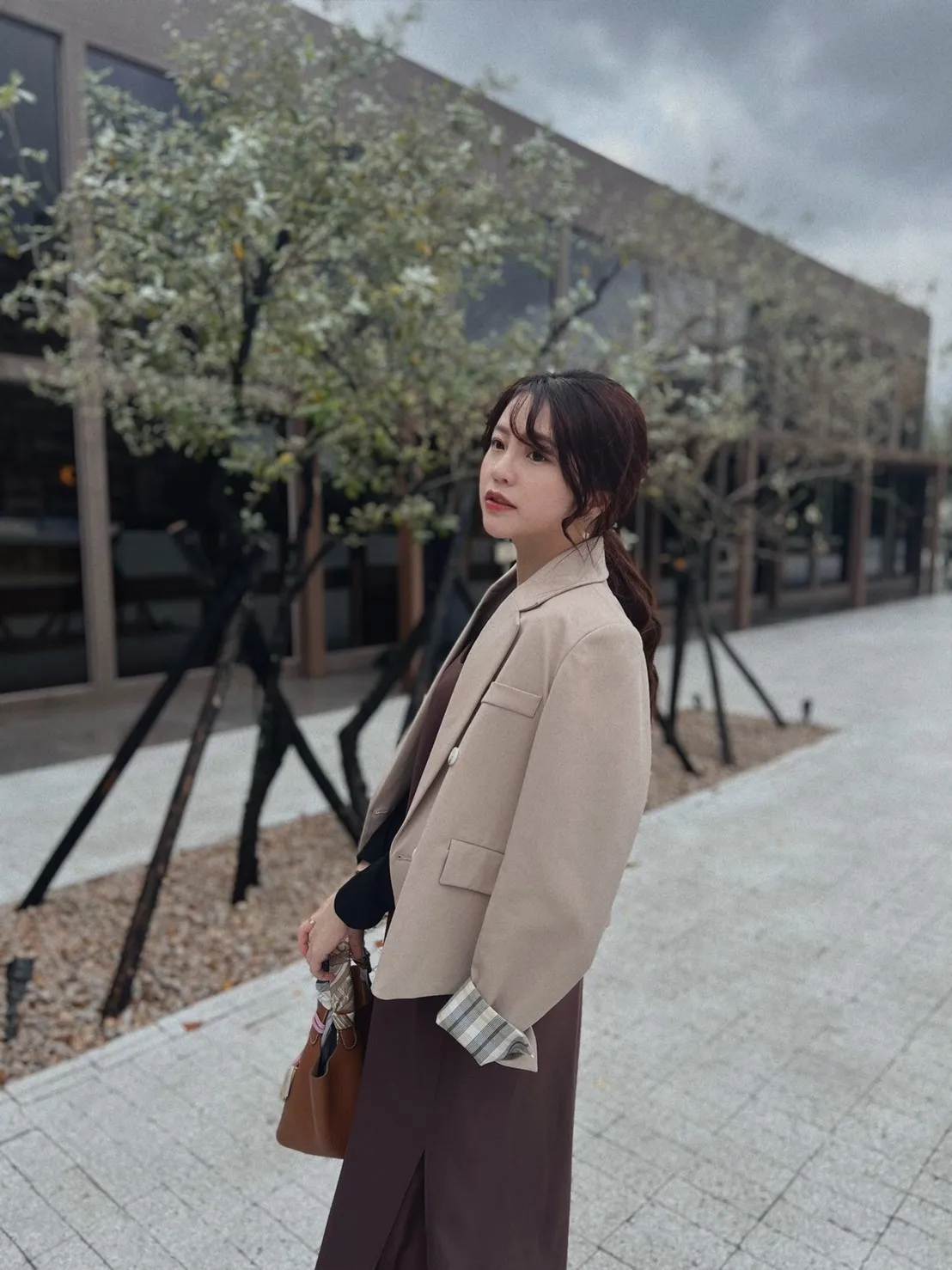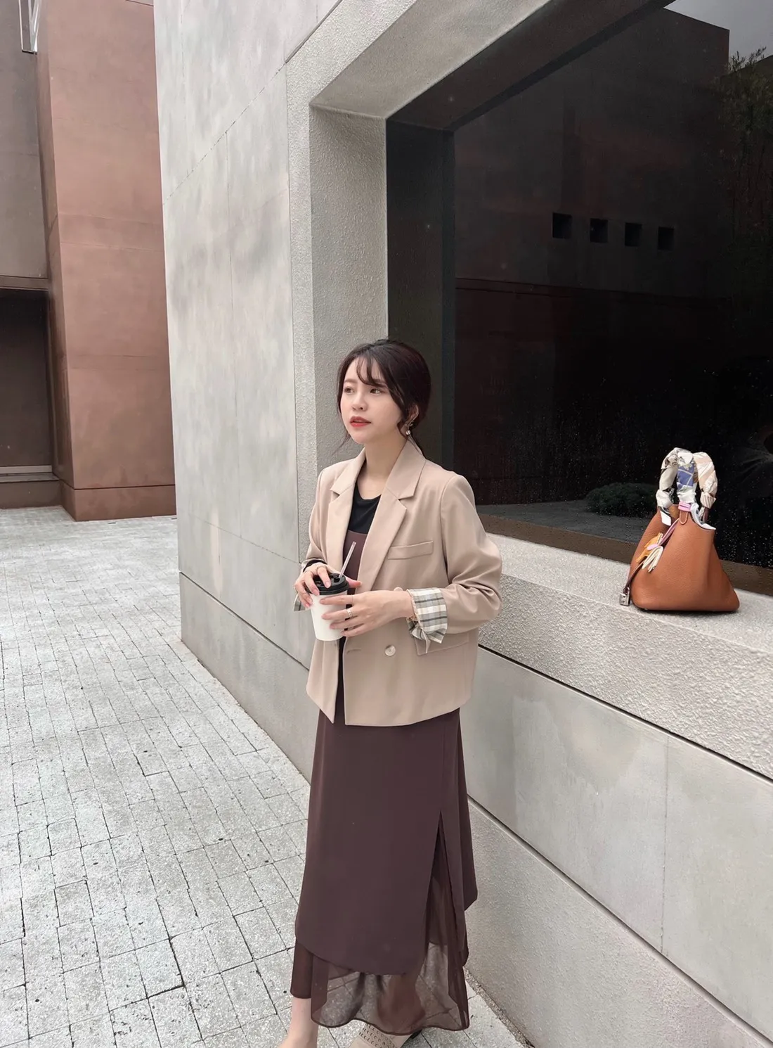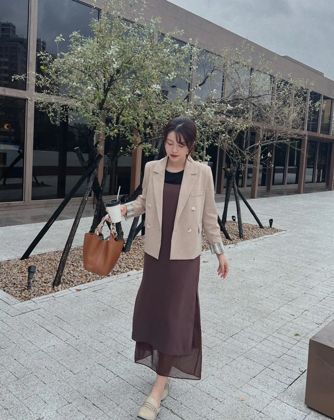 不單調的黃黑色格紋手袖設計 襯托整體西外的細膩感