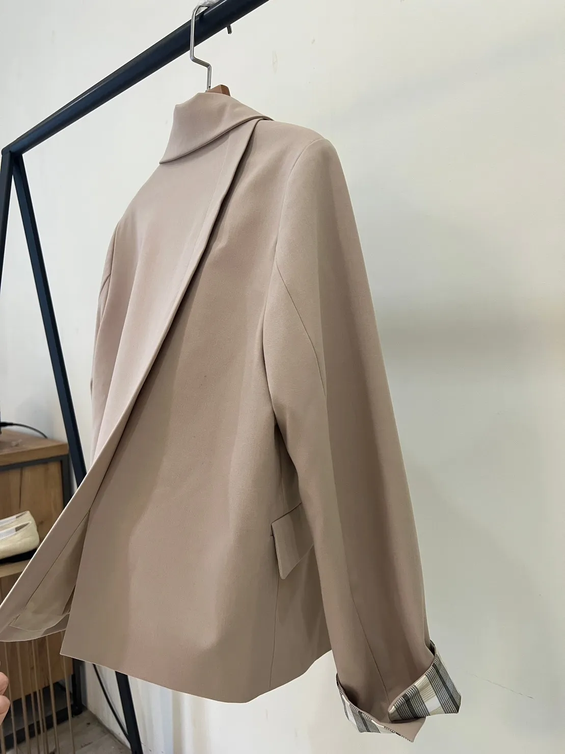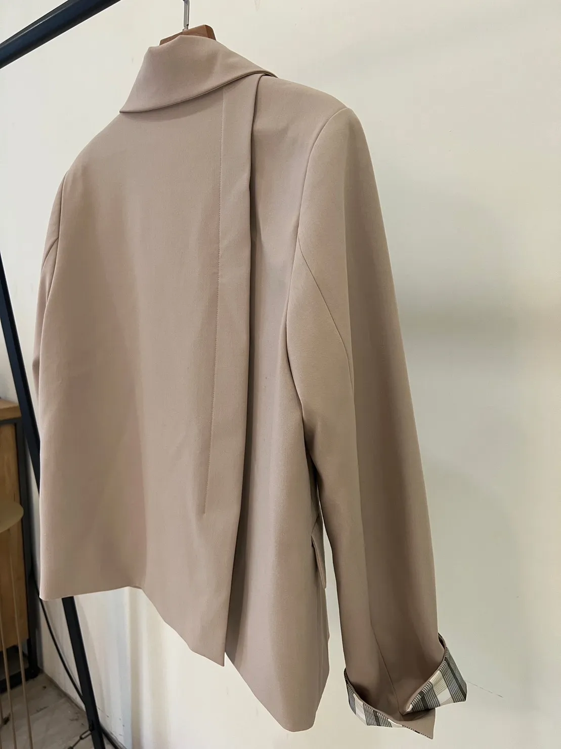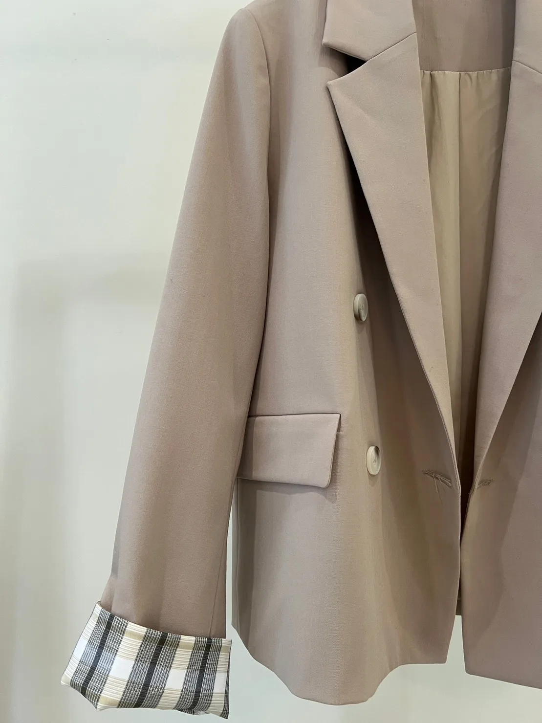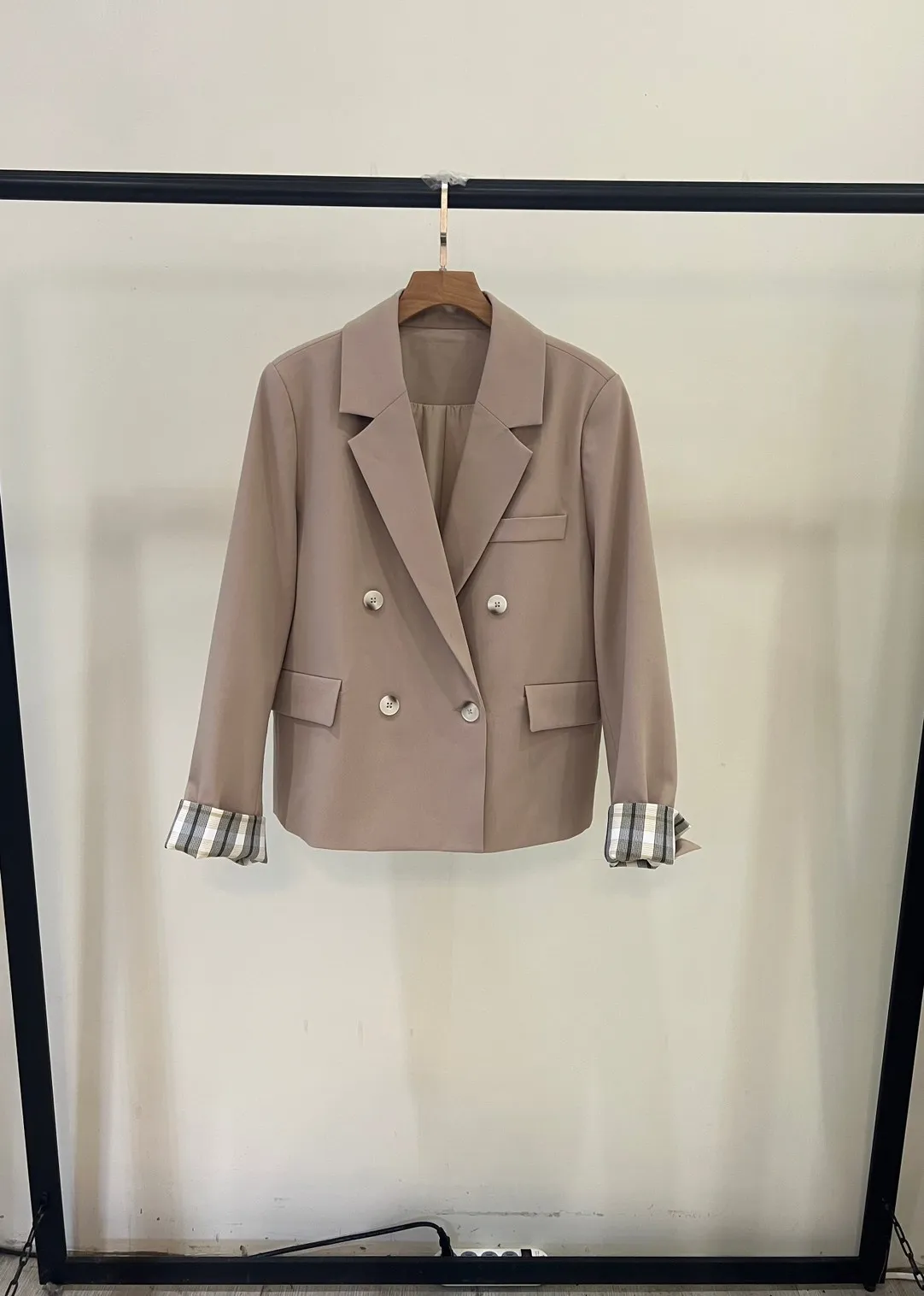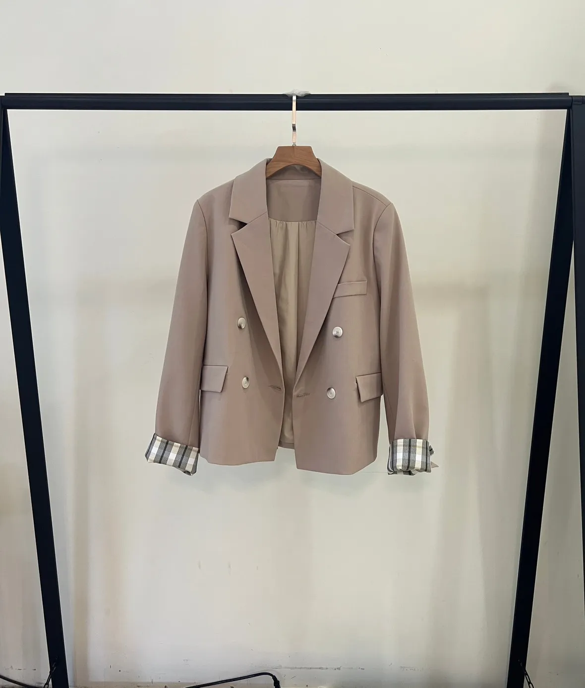 不單調的黃黑色格紋手袖設計 襯托整體西外的細膩感