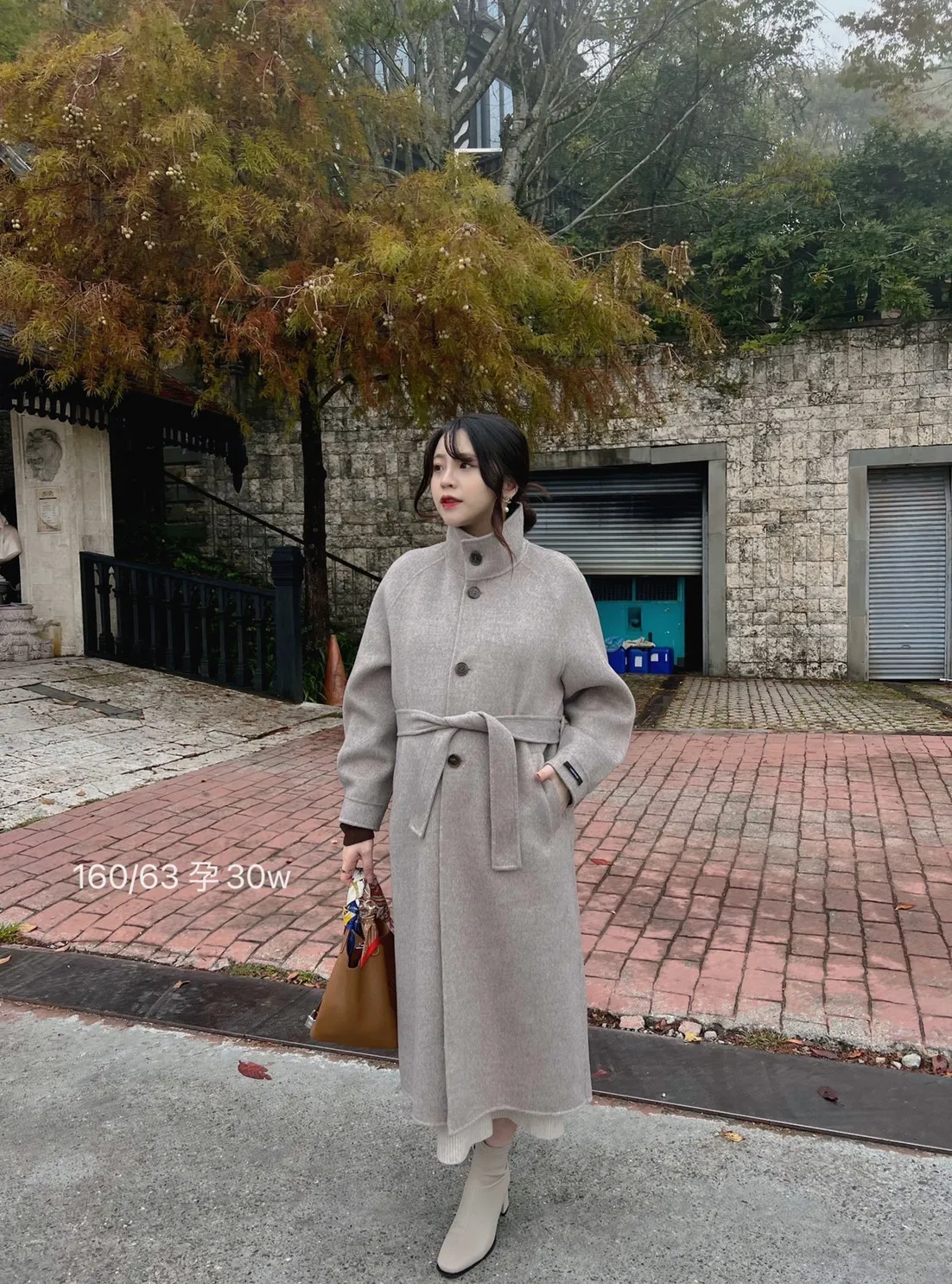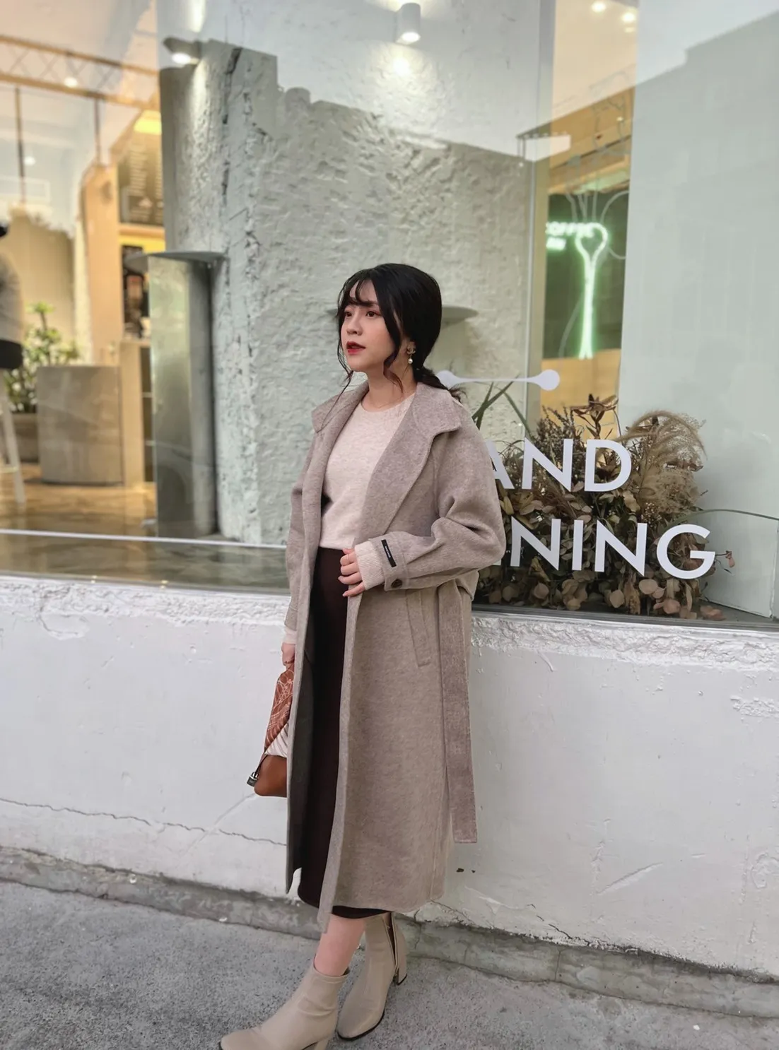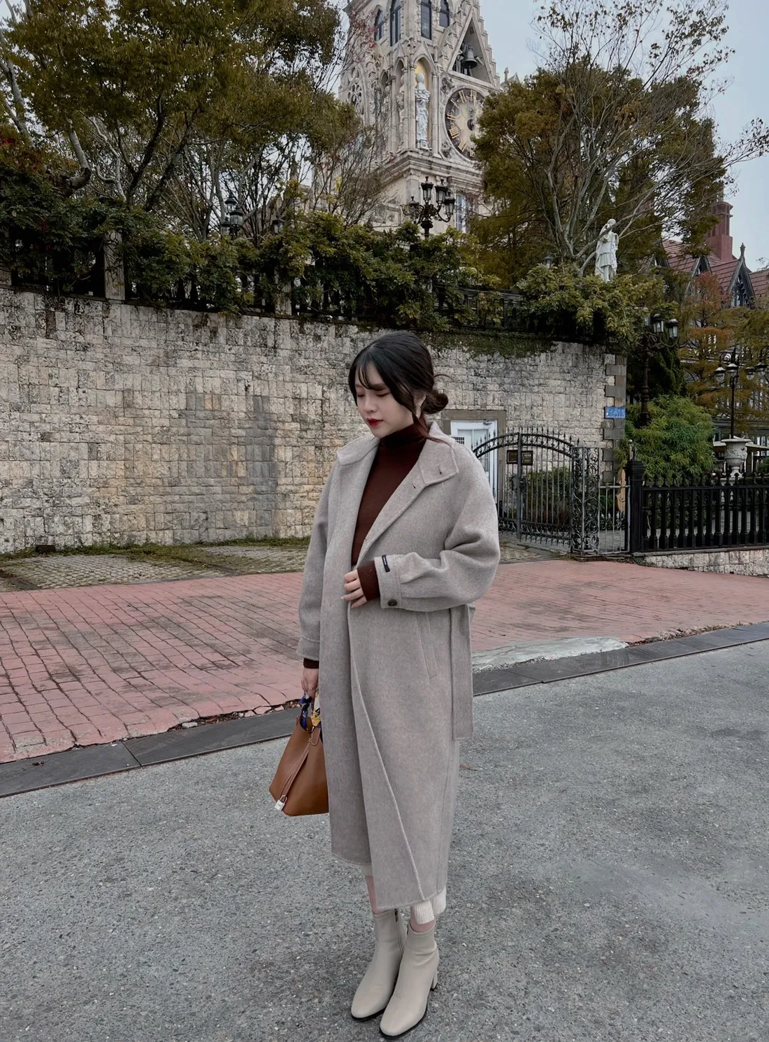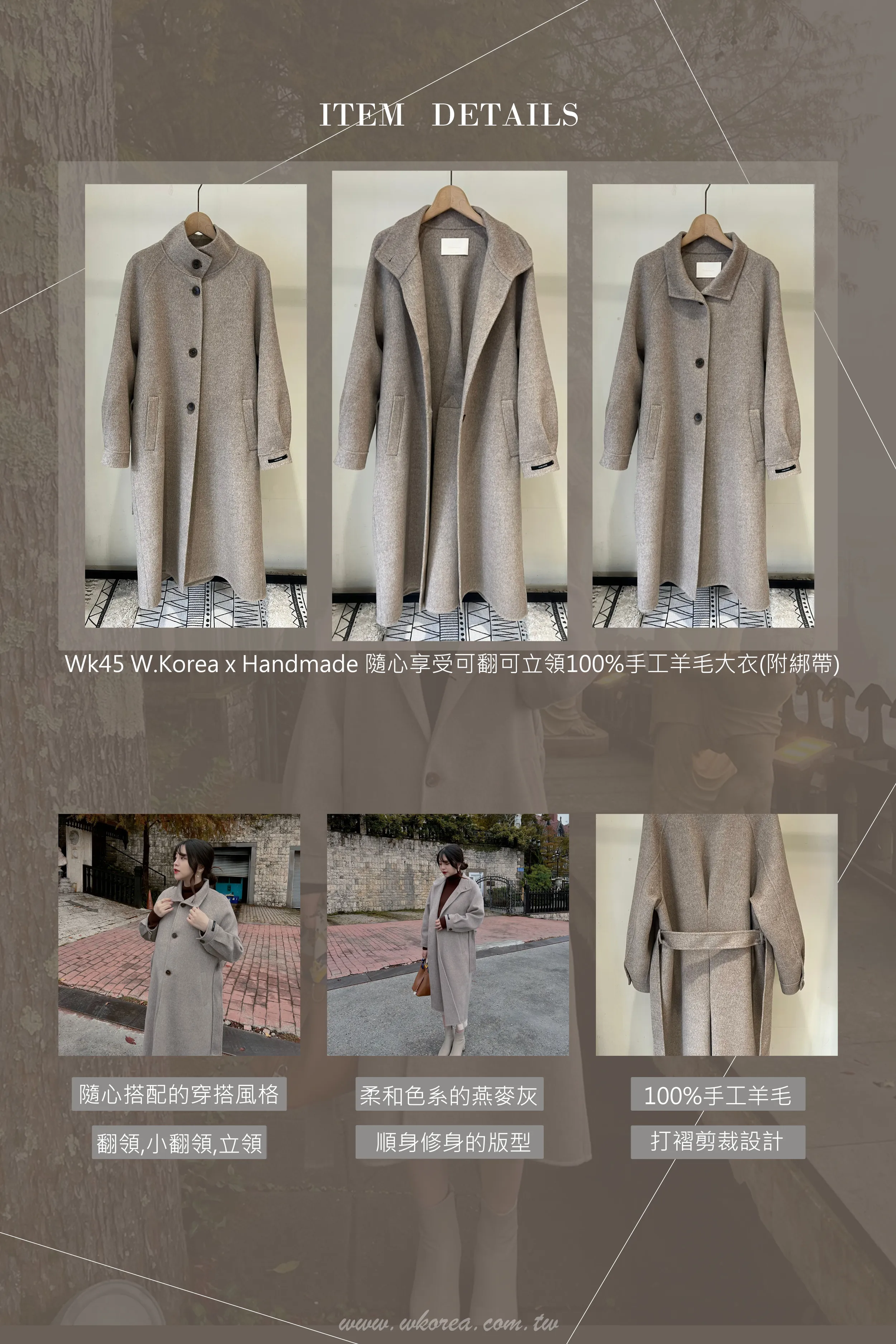 W.Korea x Handmade 隨心享受可翻可立領100%手工羊毛大衣(附綁帶)
