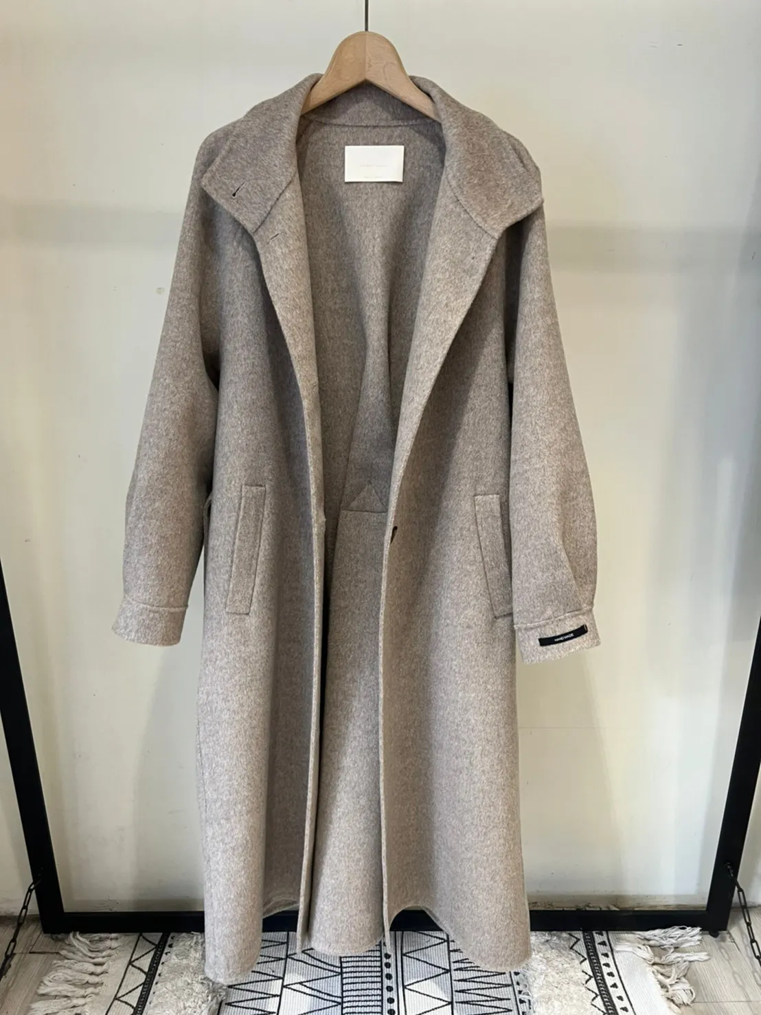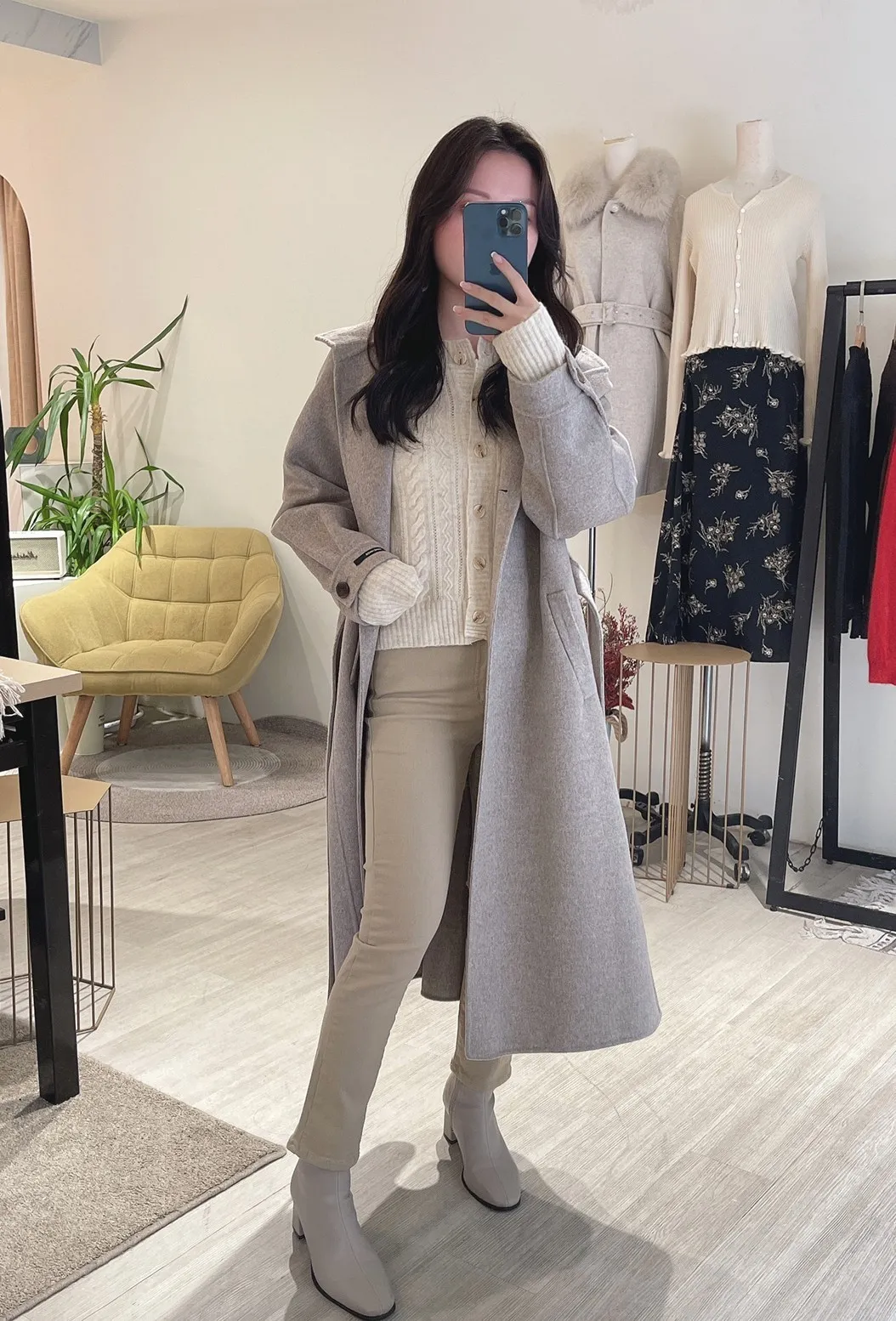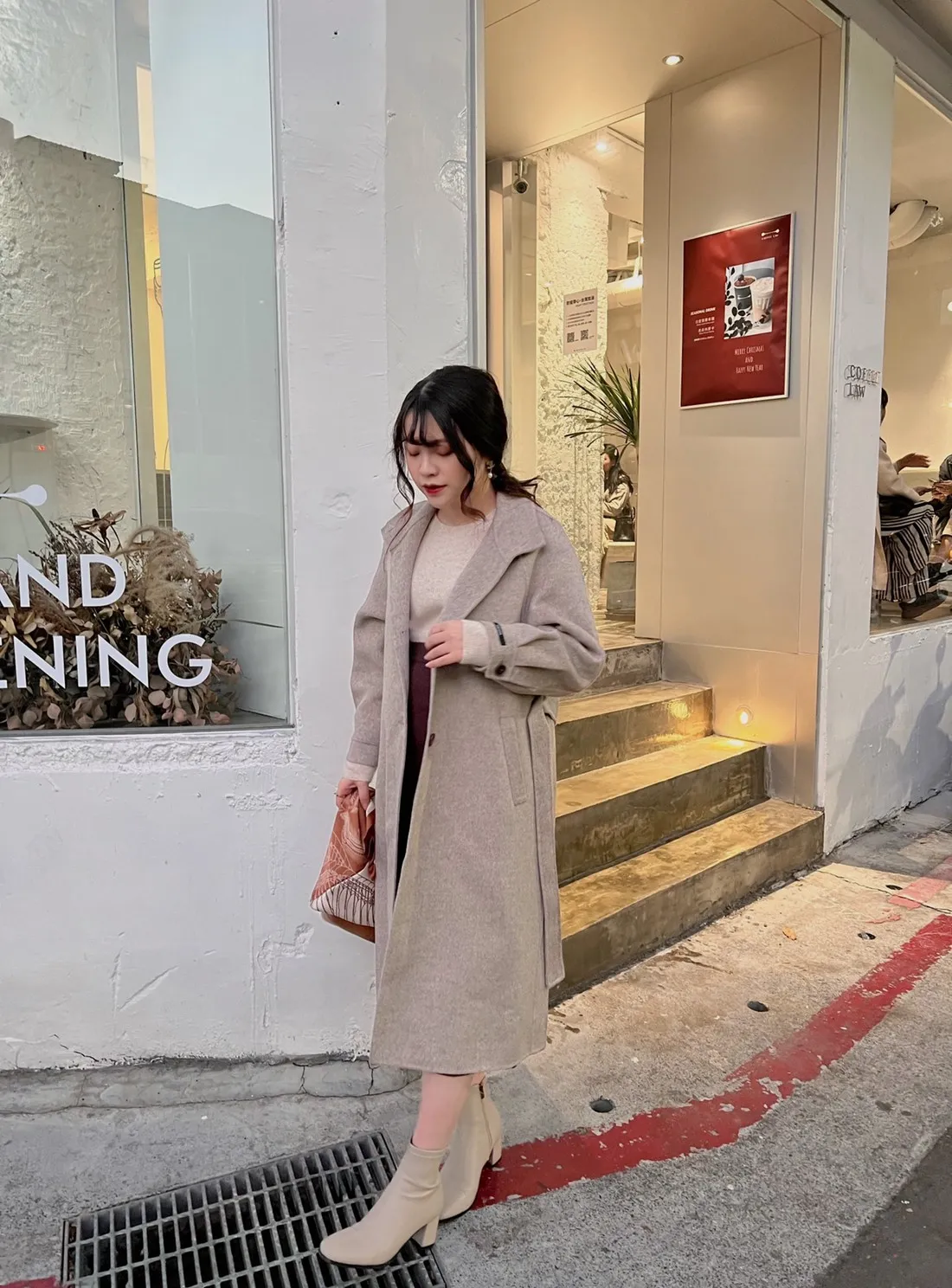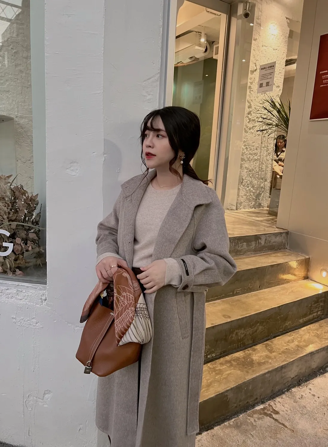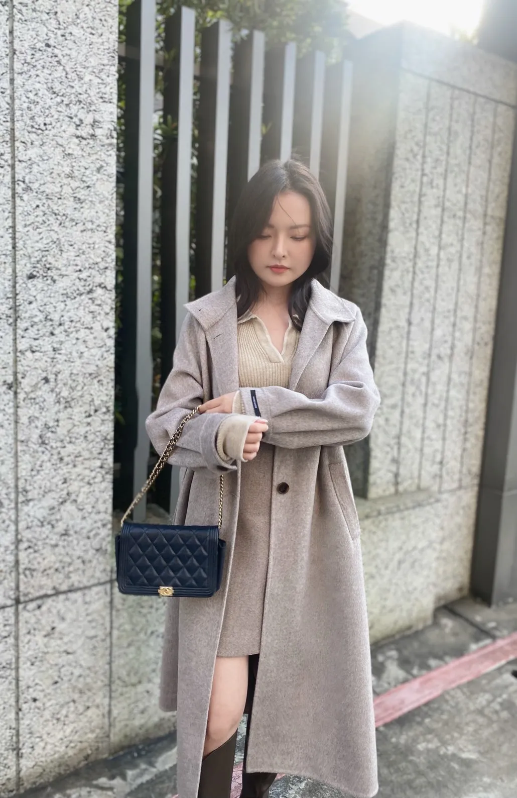 W.Korea x Handmade 隨心享受可翻可立領100%手工羊毛大衣(附綁帶)