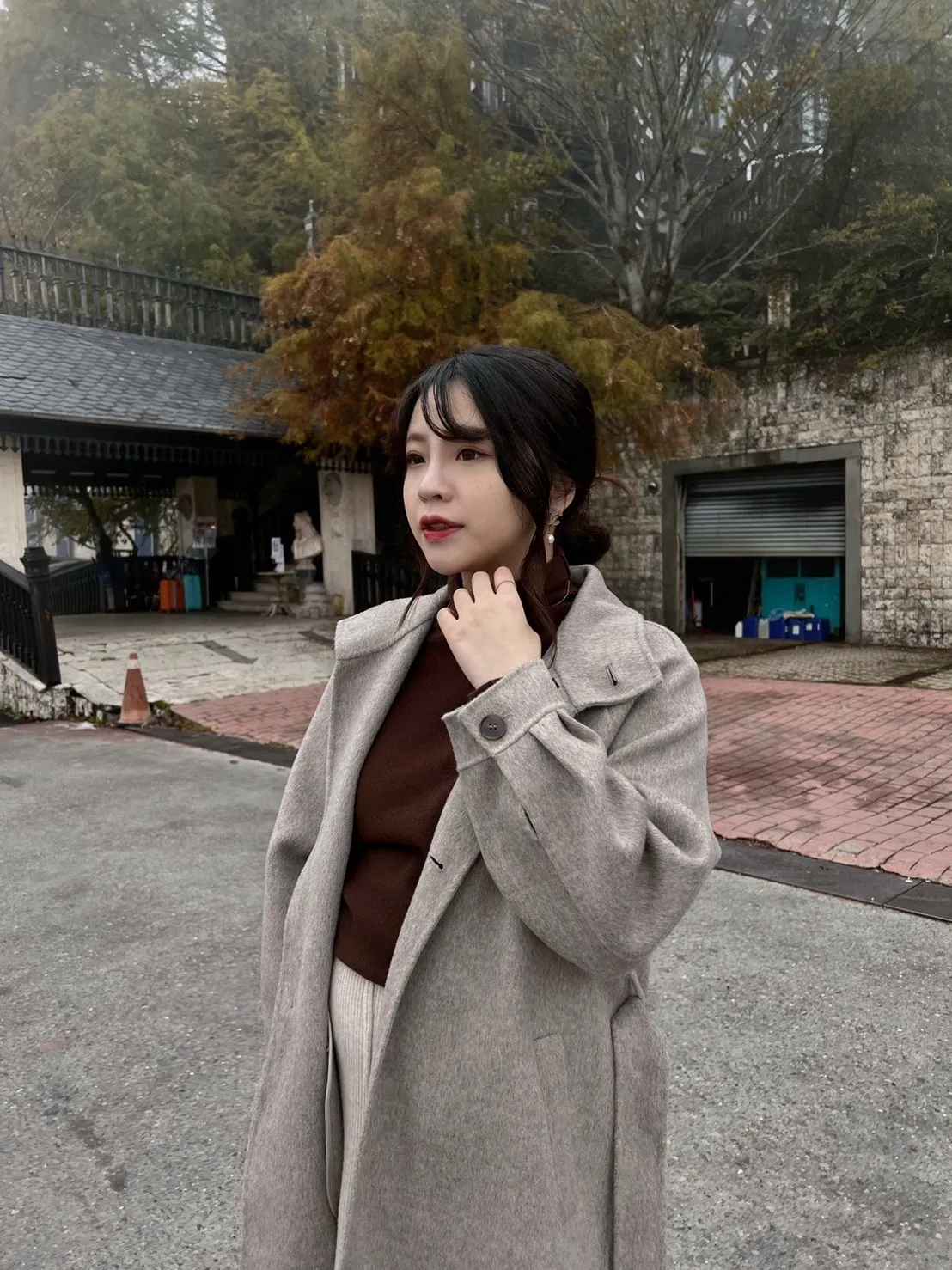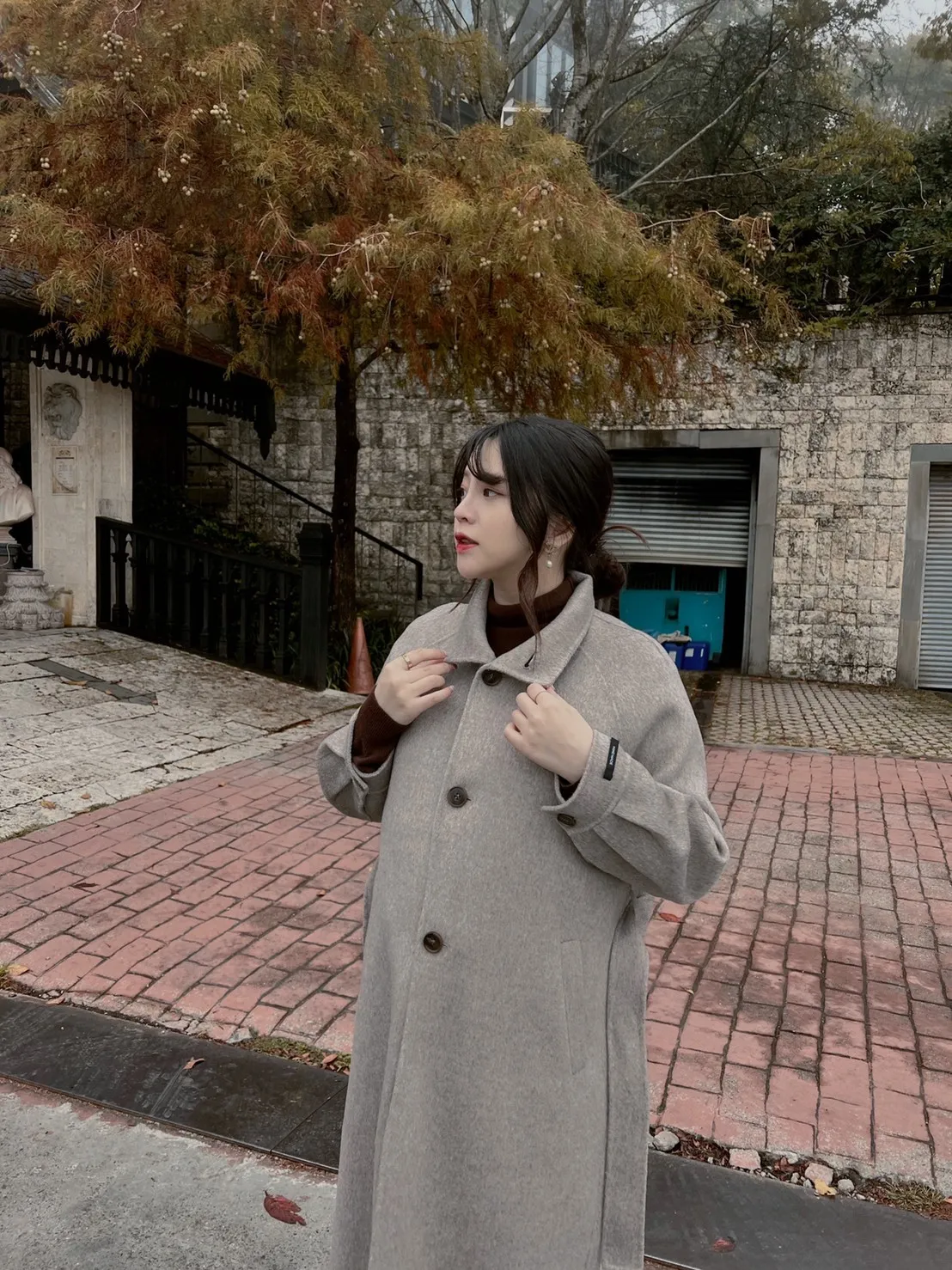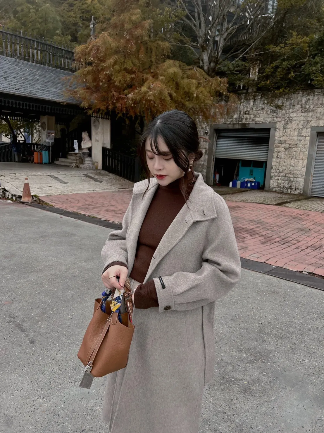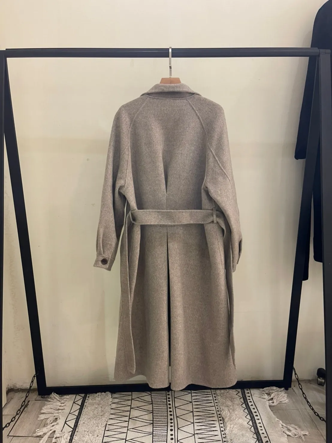 W.Korea x Handmade 隨心享受可翻可立領100%手工羊毛大衣(附綁帶)