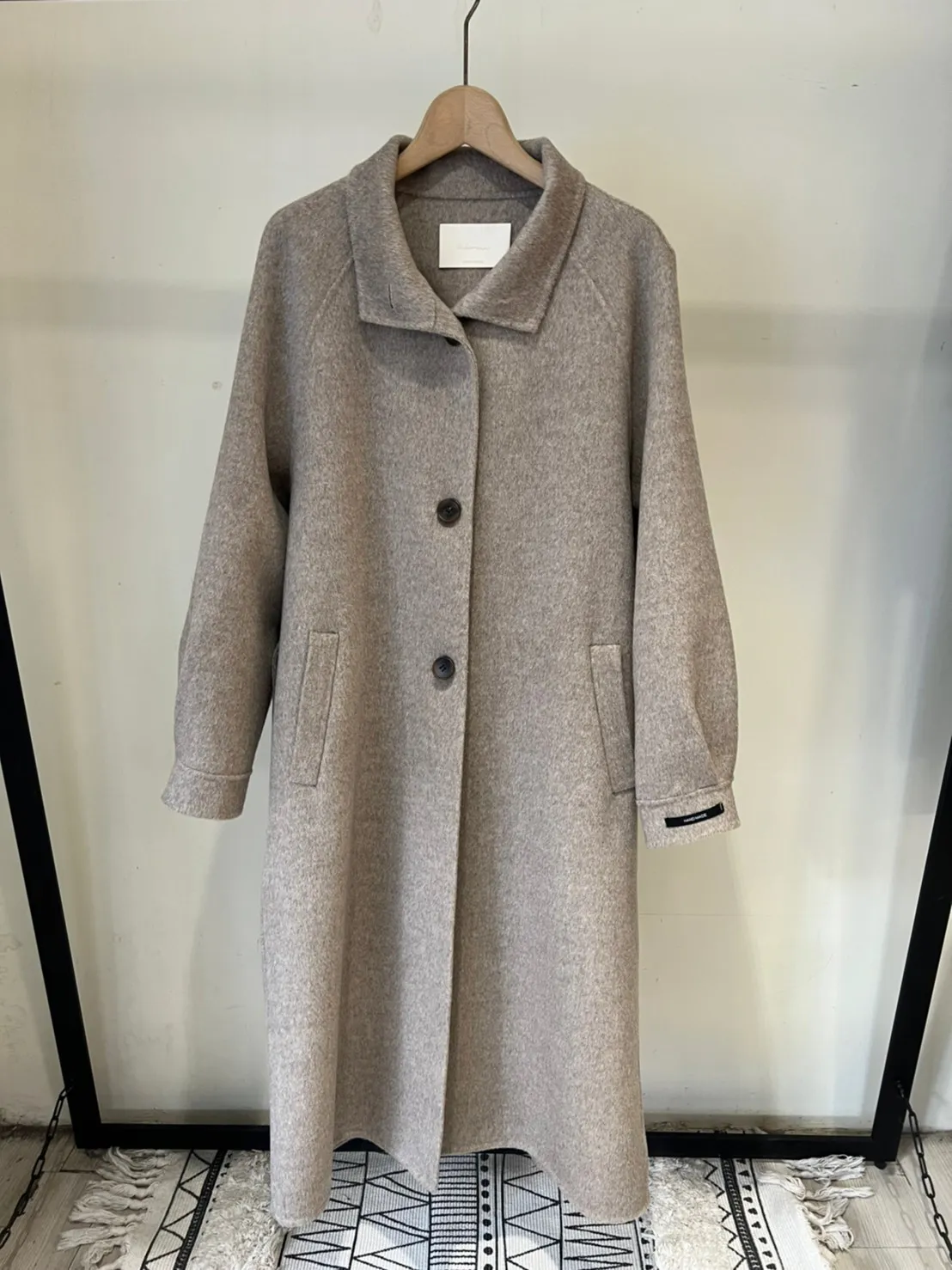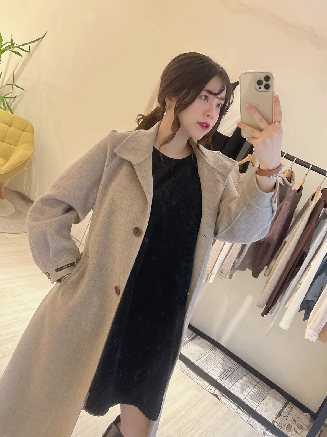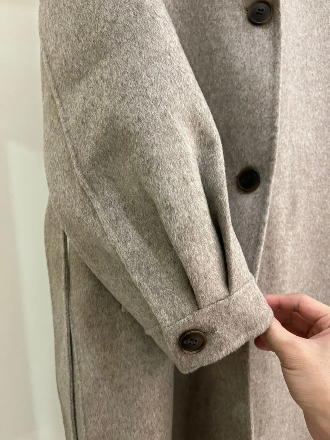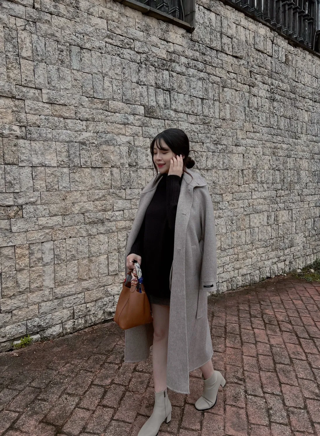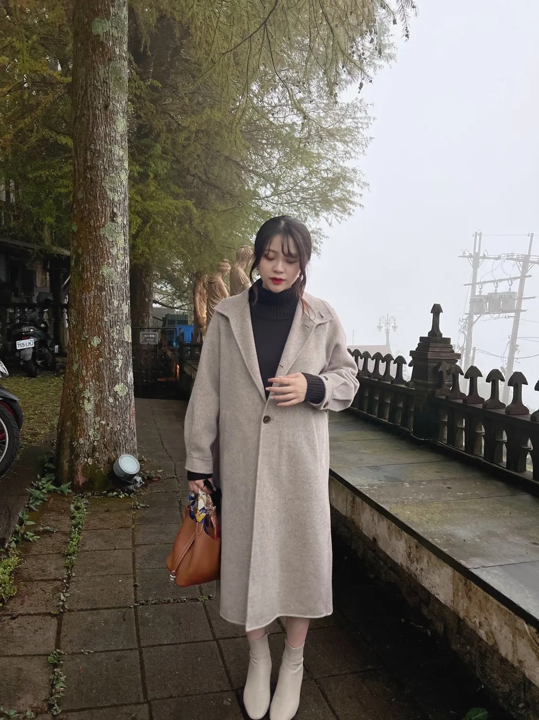 W.Korea x Handmade 隨心享受可翻可立領100%手工羊毛大衣(附綁帶)