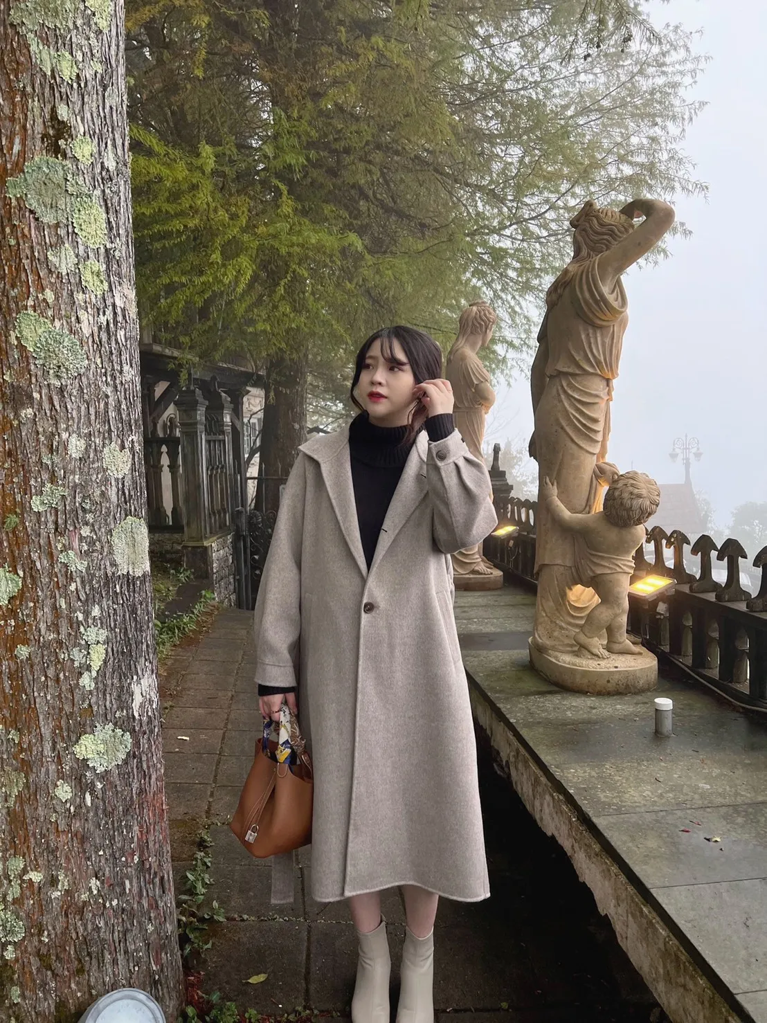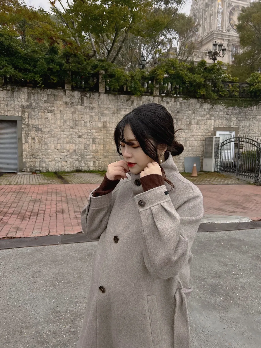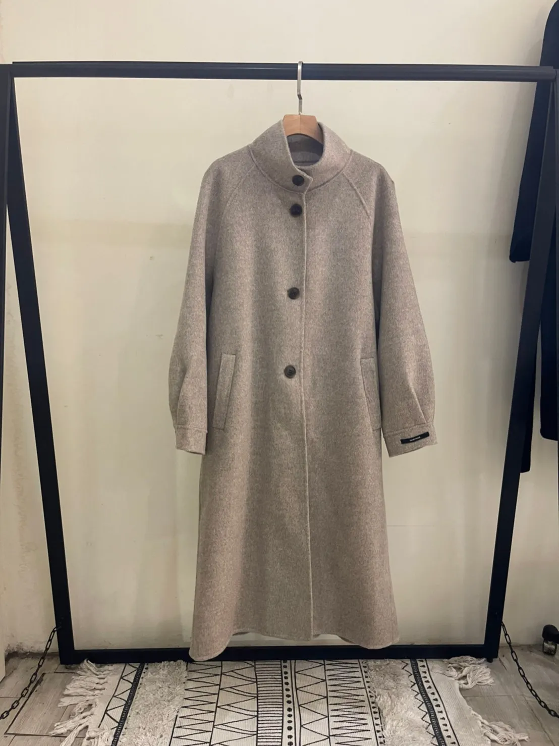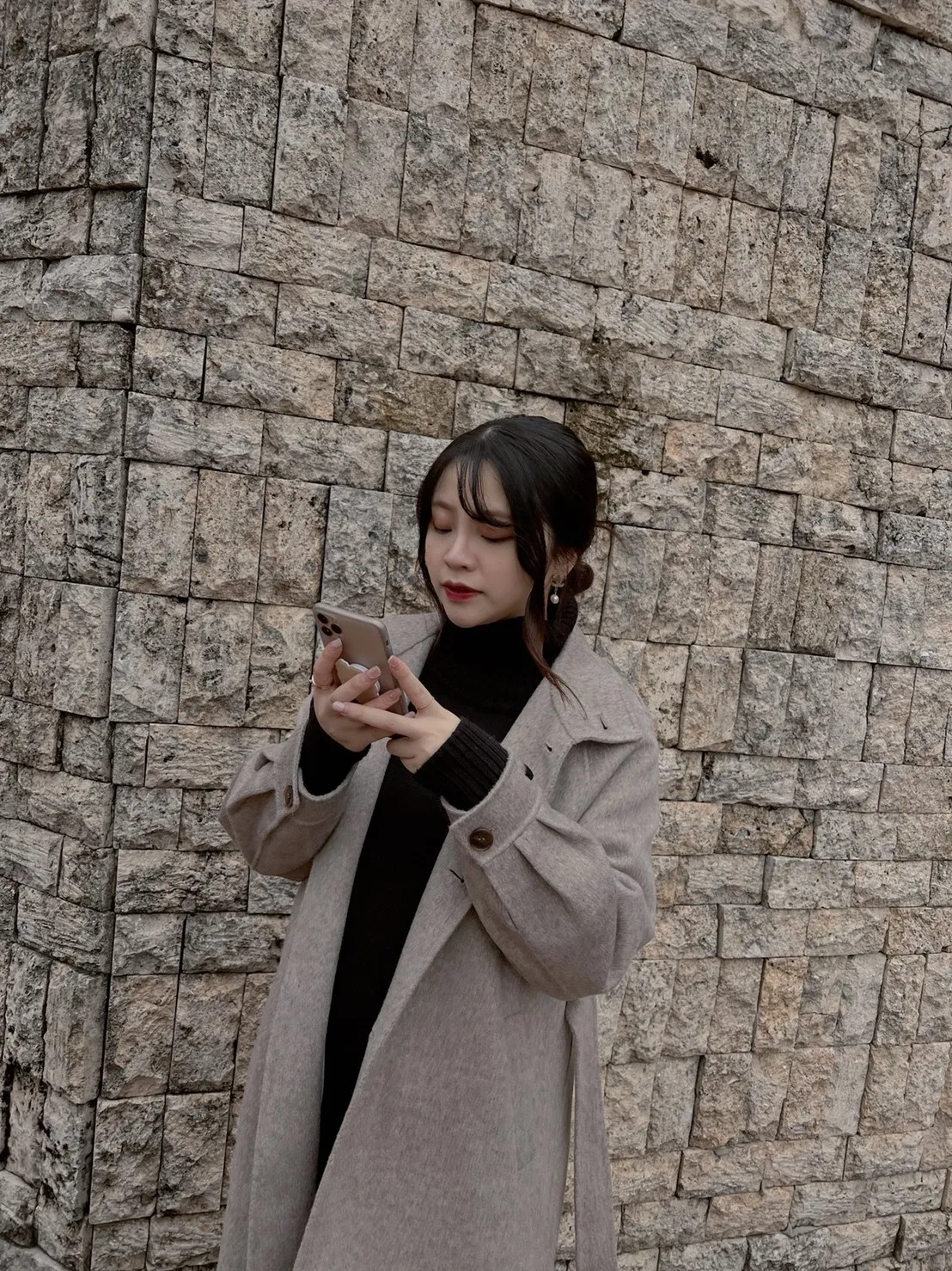 W.Korea x Handmade 隨心享受可翻可立領100%手工羊毛大衣(附綁帶)