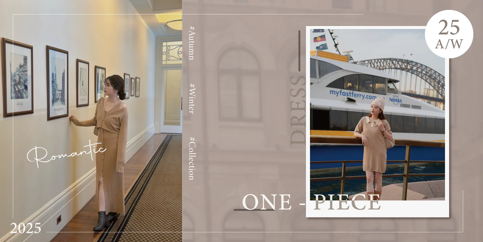 A81707 #南緯27度 33%WOOL麻花紋翻領修身長洋裝